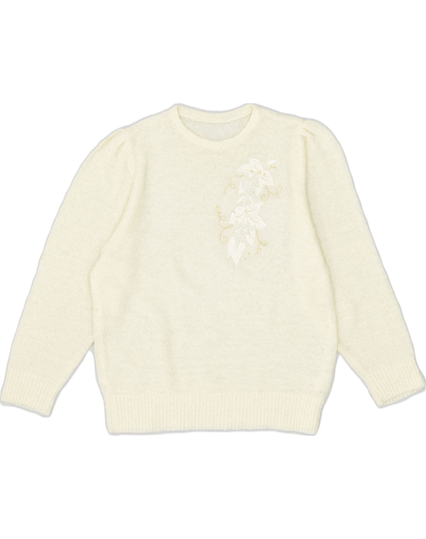 ВИНТАЖНЫЙ женский джемпер с круглым вырезом, Великобритания, 20, 2XL, с белым цветком