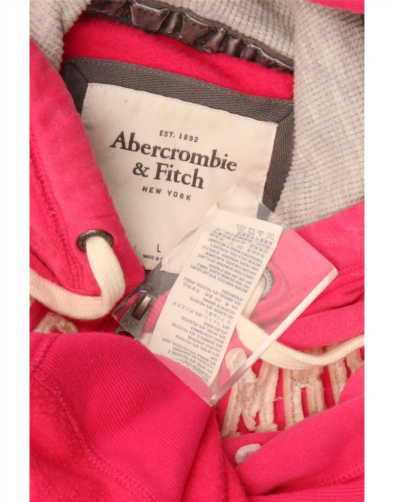 ABERCROMBIE & FITCH Womens Graphic Zip Hoodie Sweater UK 14 Large Pink