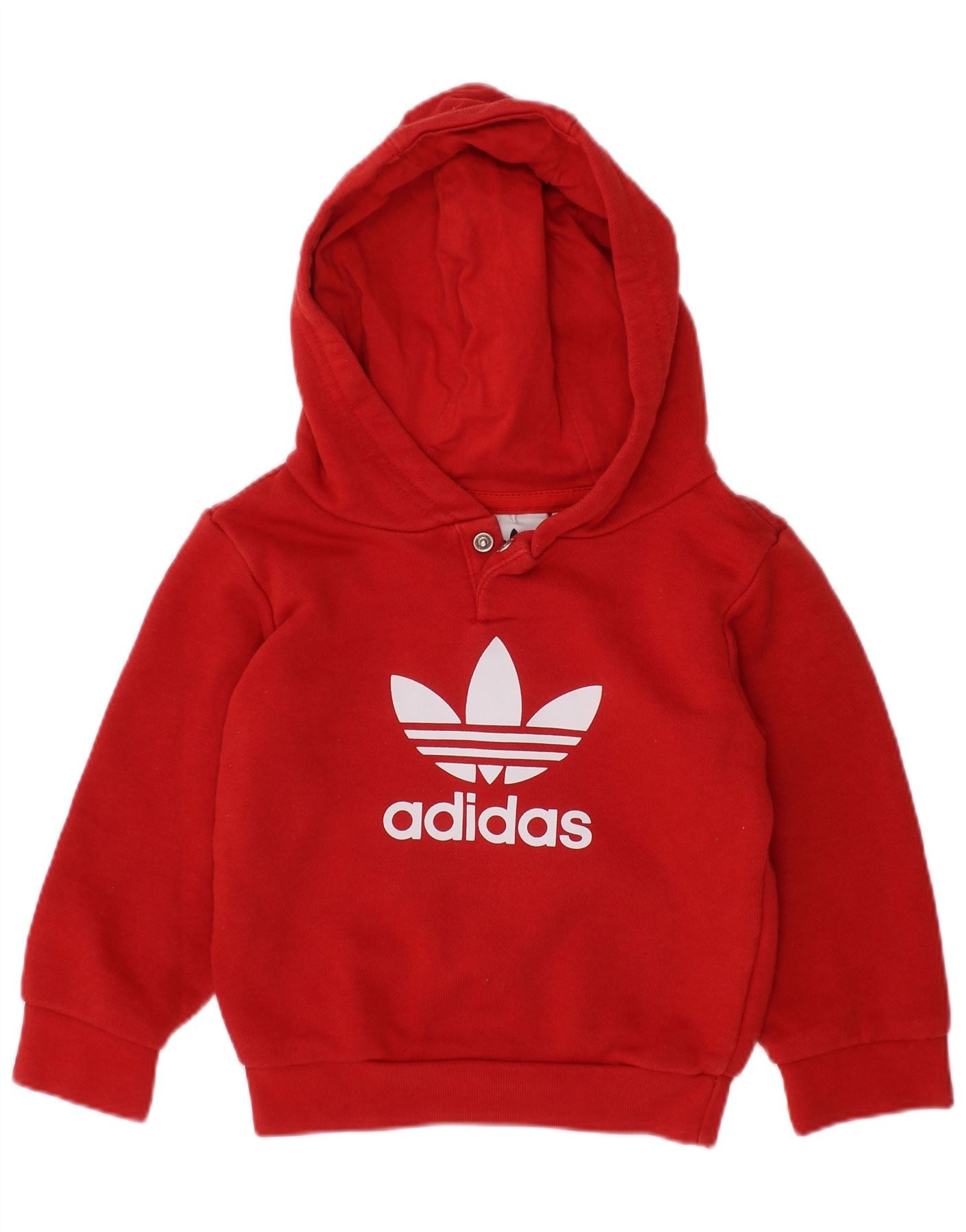 ADIDAS Baby Girls Graphic Hoodie Jumper 6-9 Months Red Cotton