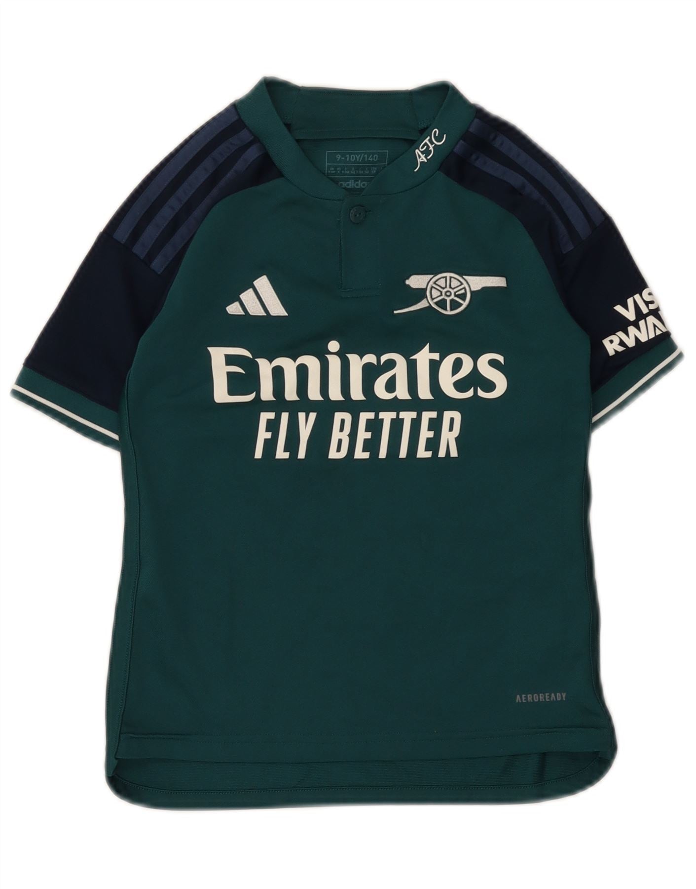 ADIDAS Футболка с рисунком Fly Emirates для мальчиков 9–10 лет, зеленая с цветными блоками