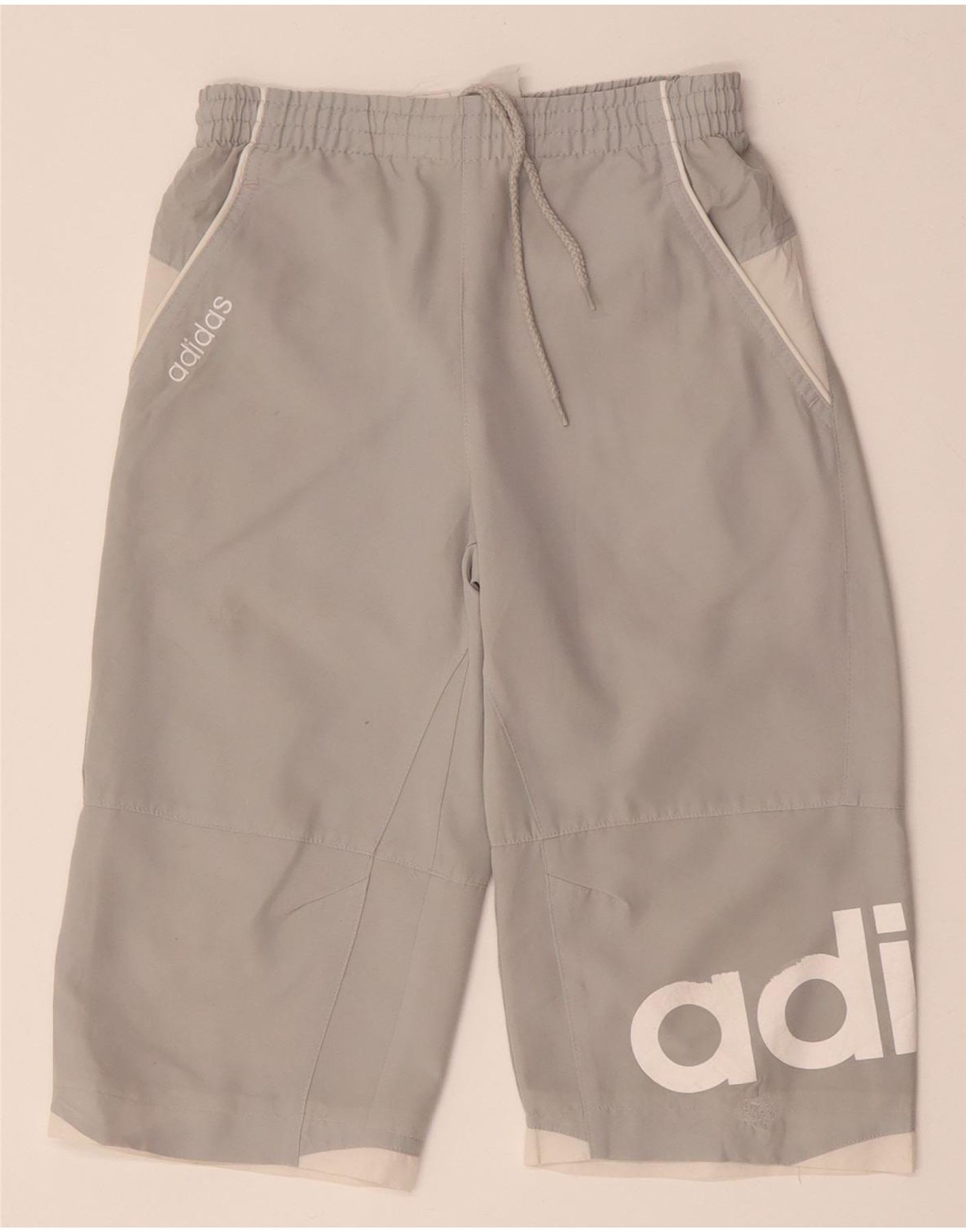 Спортивные шорты-бермуды ADIDAS для мальчиков с рисунком, 15–16 лет, серые с цветными блоками