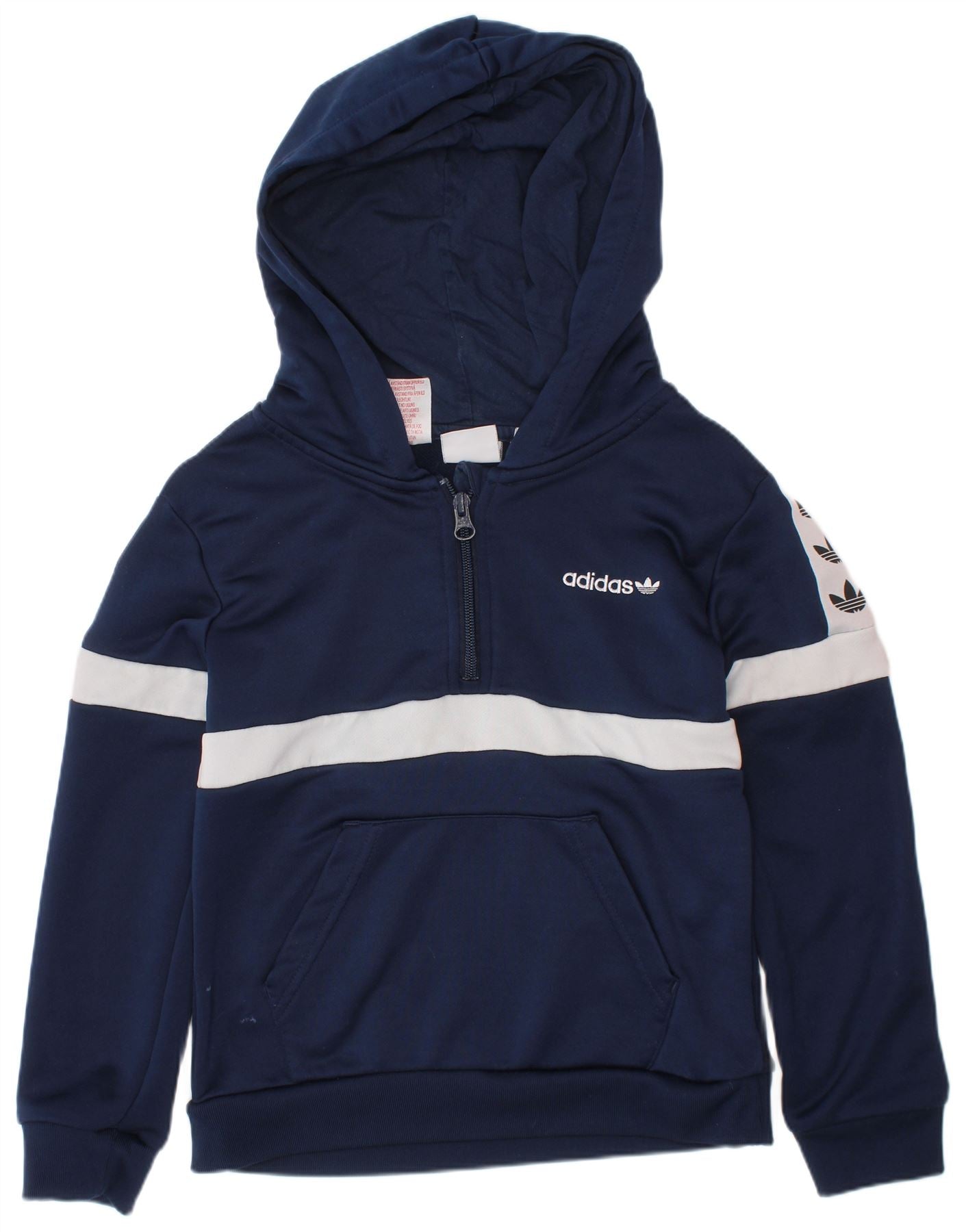 ADIDAS Джемпер с капюшоном на молнии с рисунком для мальчиков 7–8 лет, темно-синий с цветными блоками