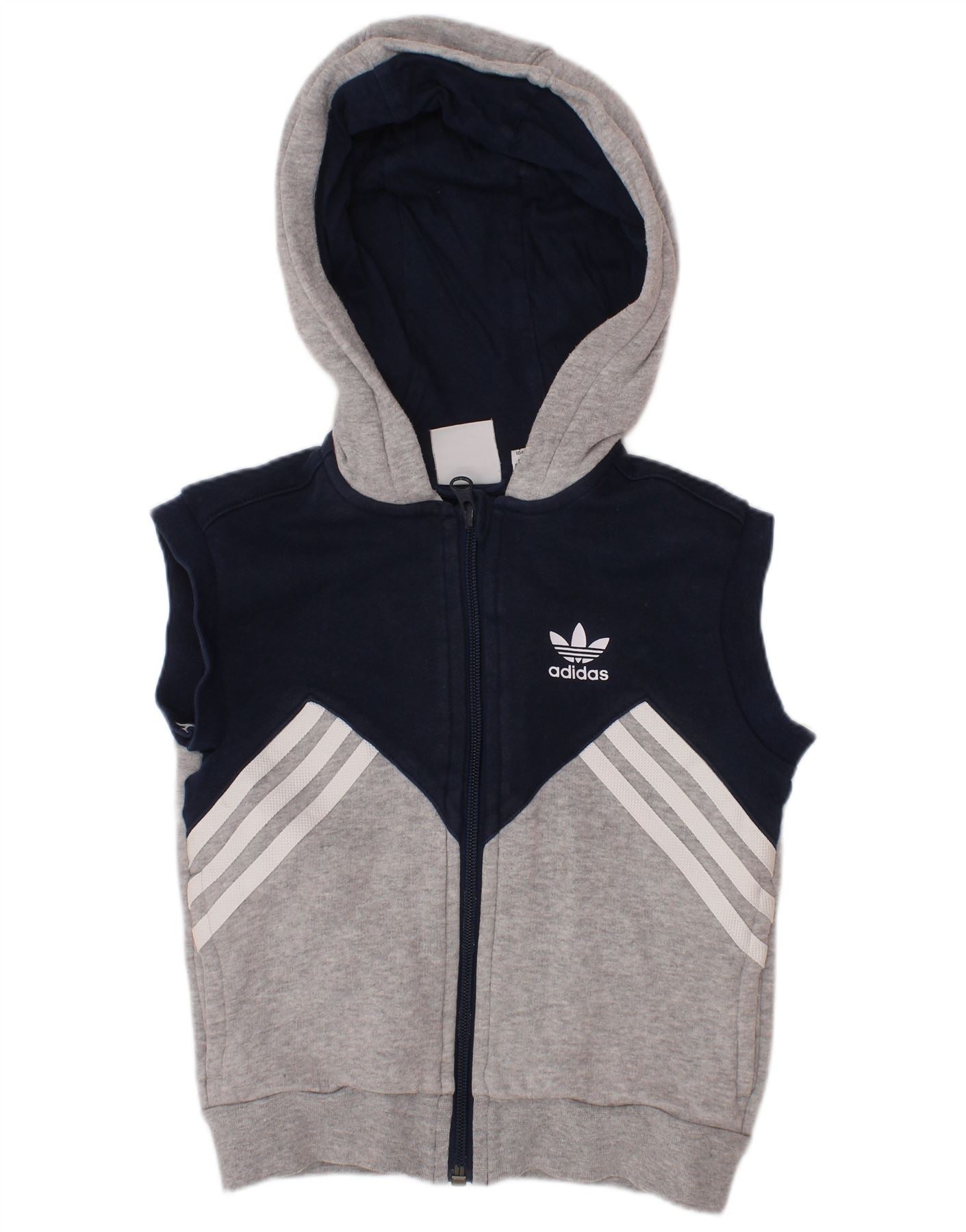 Свитер с капюшоном и молнией без рукавов ADIDAS для мальчиков 3–4 лет, темно-синий с цветными блоками