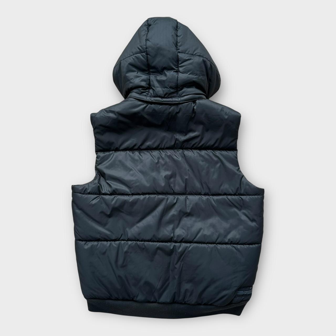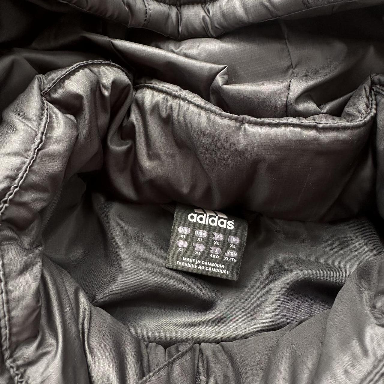 Винтажная черная куртка-пуховик Adidas начала 2000-х годов Y2K на молнии со съемным капюшоном и вышитым логотипом на груди.