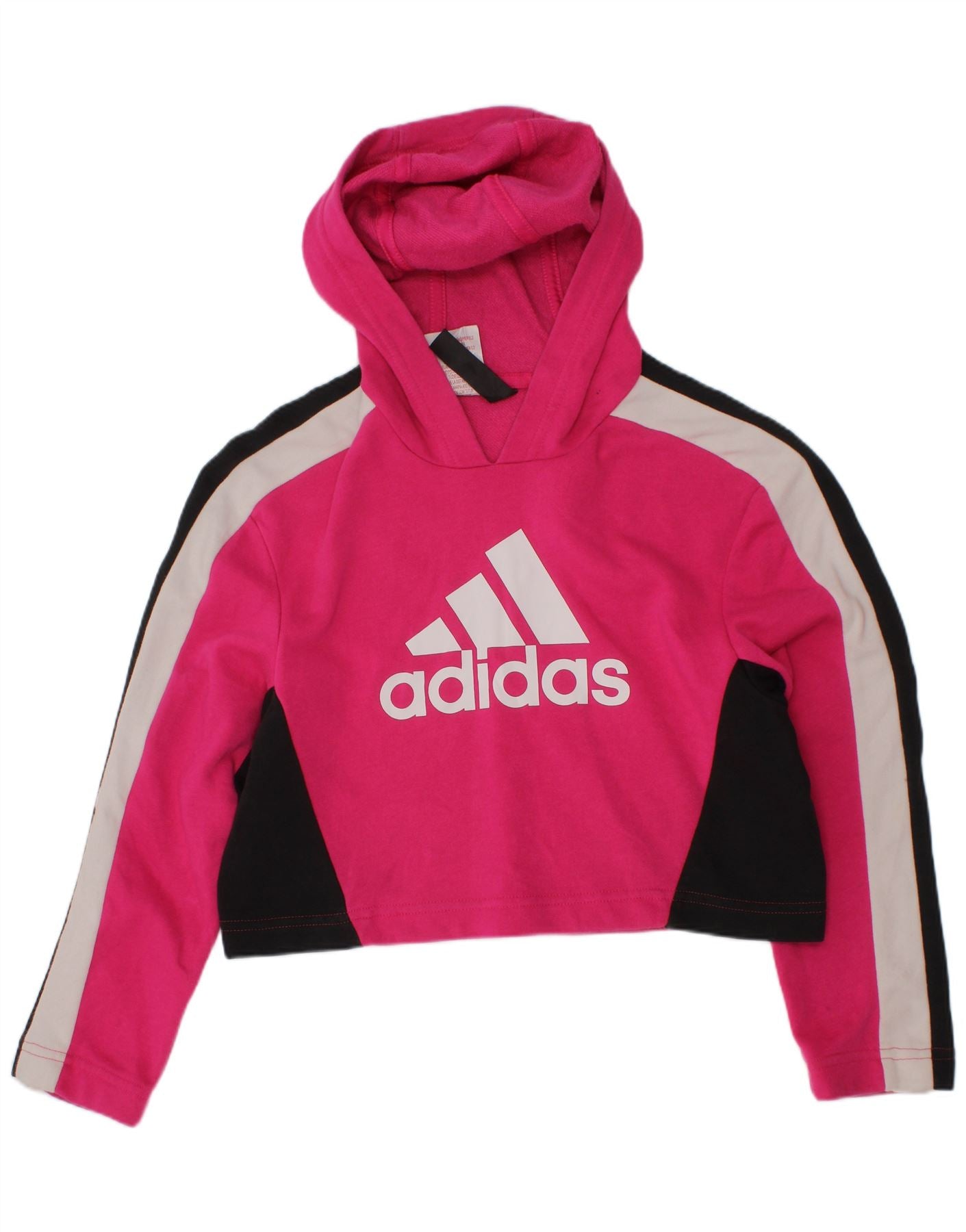 Укороченный джемпер с капюшоном и рисунком для девочек ADIDAS, 7–8 лет, розовый с цветными блоками