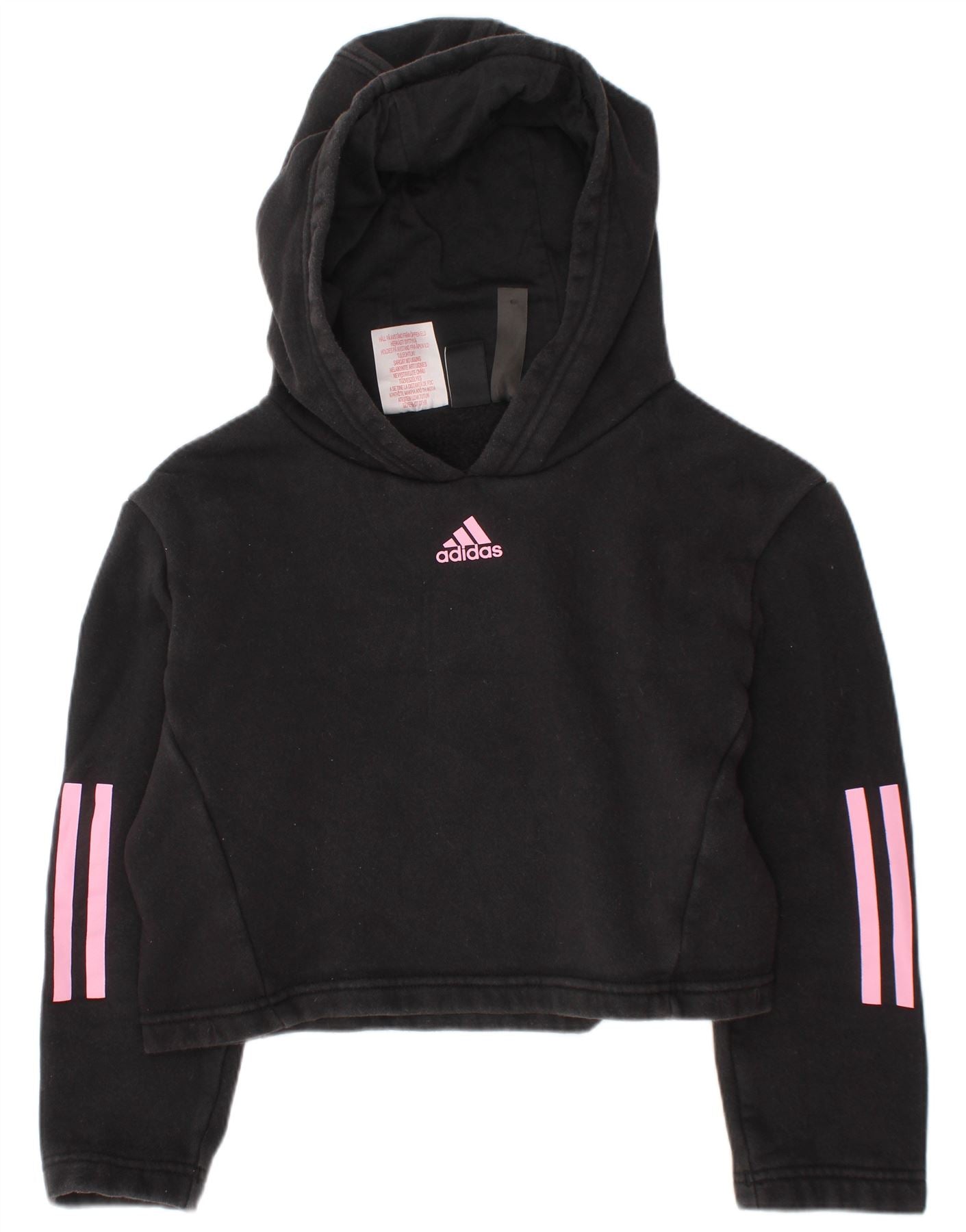 Укороченный джемпер с капюшоном ADIDAS для девочек 7-8 лет, черный хлопок