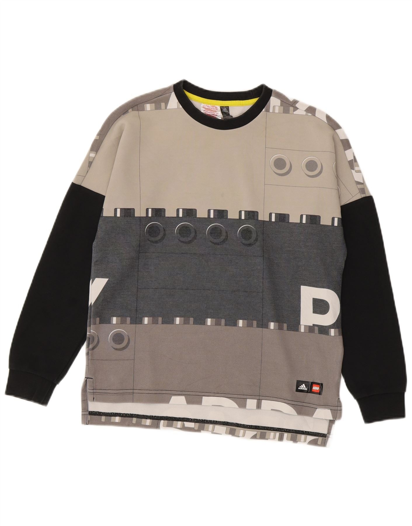 Джемпер с рисунком Adidas для девочек 11–12 лет, средний серый с цветными блоками