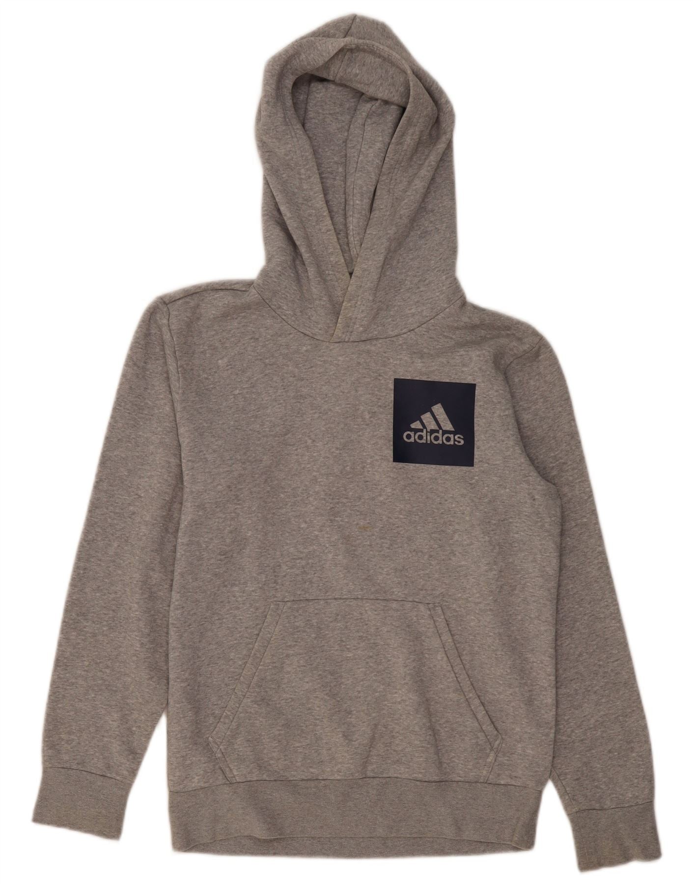 Мужской джемпер с капюшоном ADIDAS, маленький серый, хлопковый