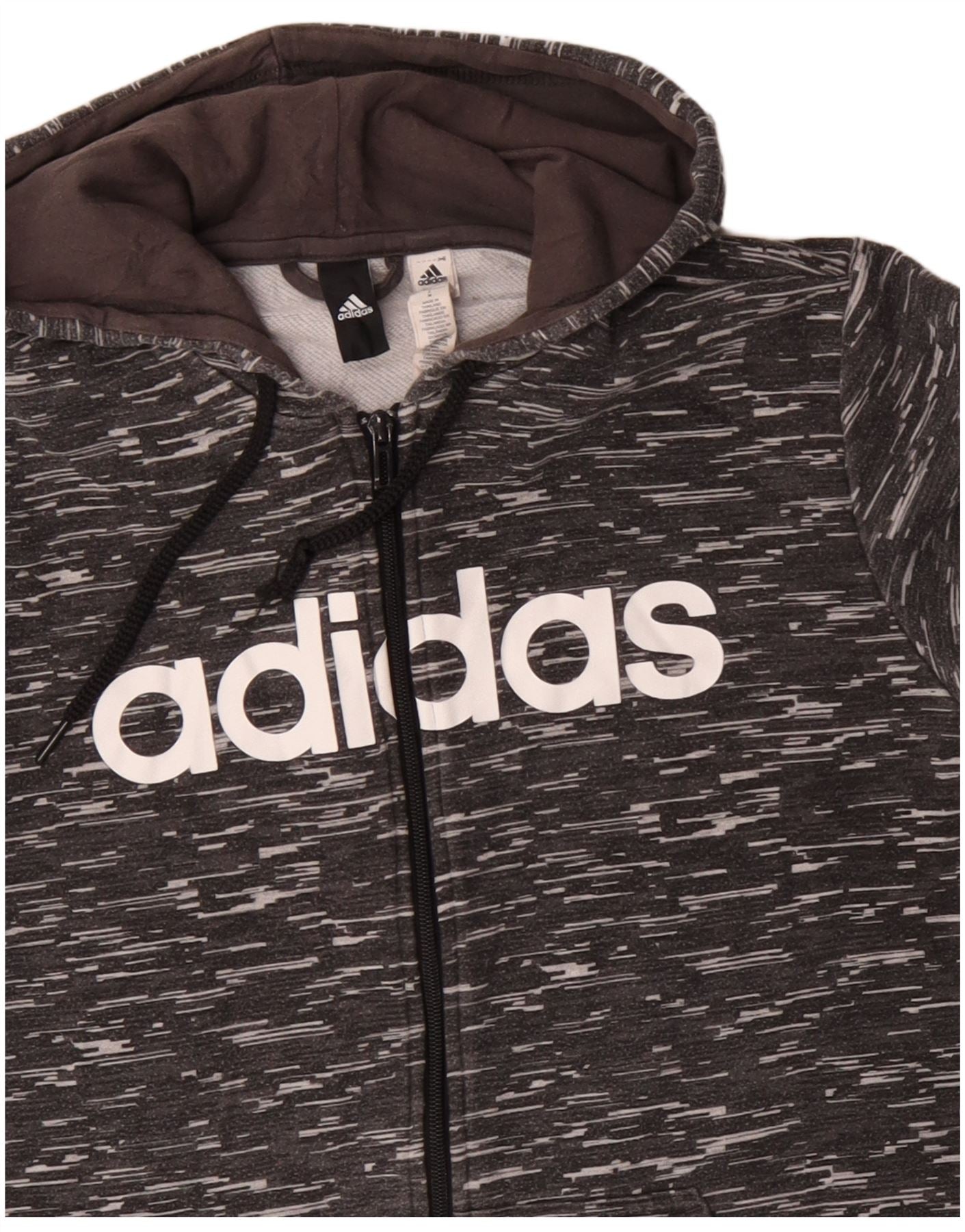 ADIDAS Мужской свитер с капюшоном и молнией с графическим рисунком, средний серый хлопок с крапинками