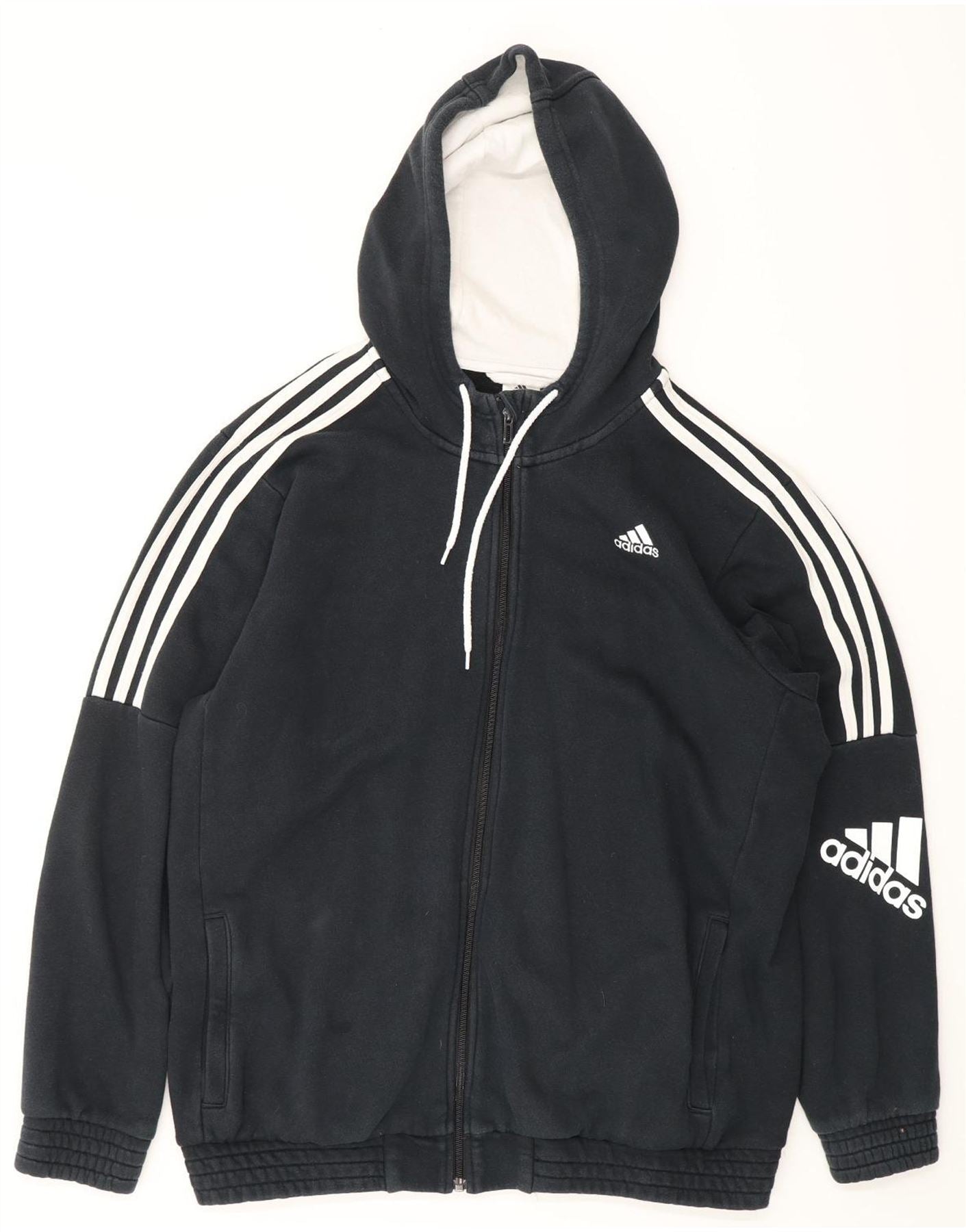 Мужской свитер с капюшоном ADIDAS на молнии с графическим рисунком XL, темно-синий, хлопок