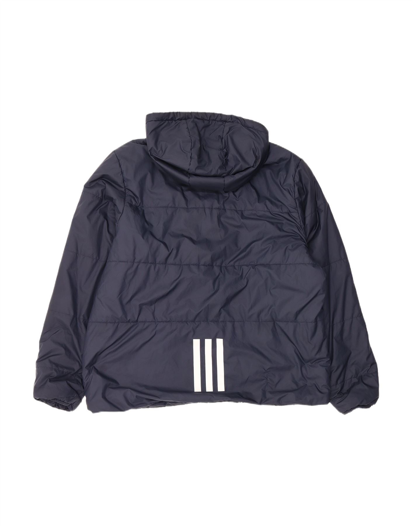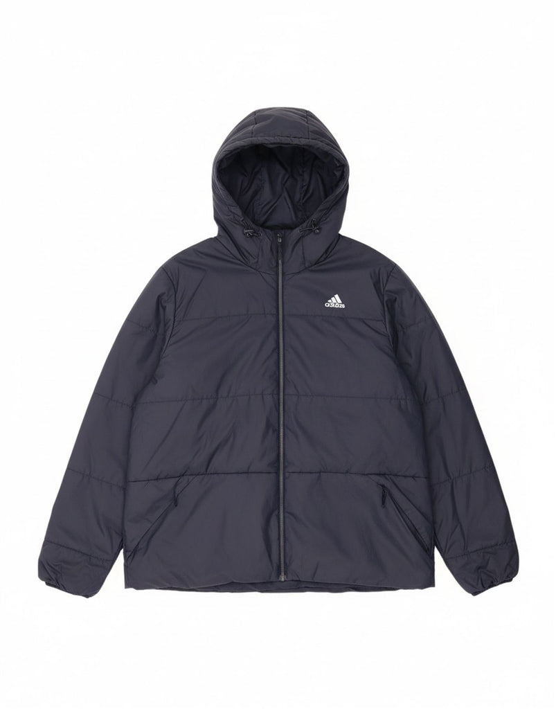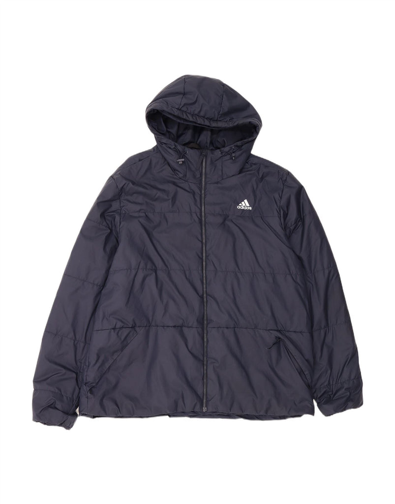 ADIDAS Mens Hooded Padded Jacket UK 44 2XL Navy Blue Polyester