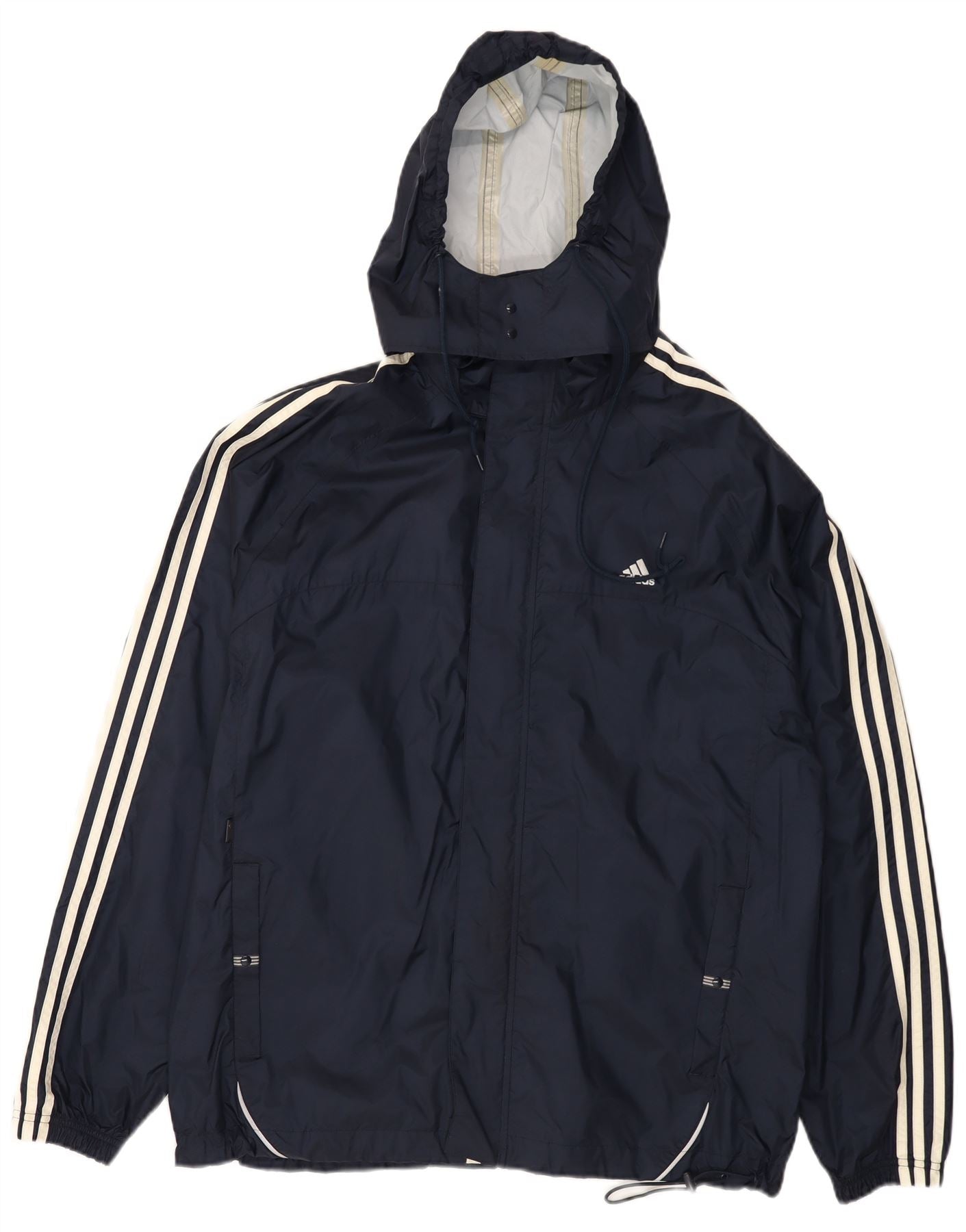 Мужская дождевик с капюшоном ADIDAS UK 40, большая темно-синяя нейлоновая куртка
