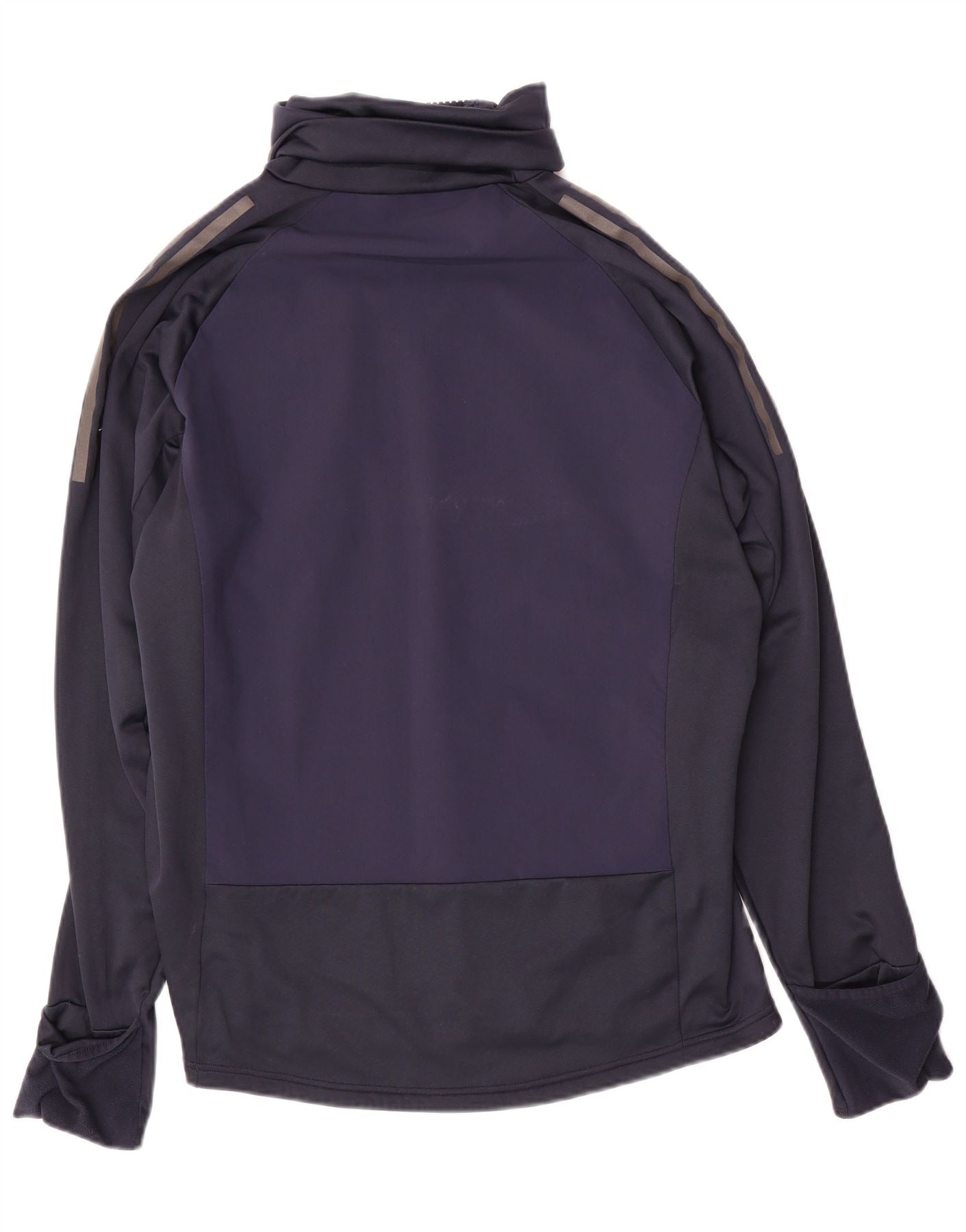 - Описание ИИ: Мужской спортивный пуловер Adidas выполнен из смесовой ткани темно-синего цвета, обеспечивающей легкий комфорт. Модель имеет текстурированный высокий воротник и длинные рукава с отверстиями для больших пальцев для спортивной посадки. На видном месте размещен герб «Манчестер Юнайтед» и логотип спонсора AON. Фирменный знак Adidas и фирменные три полоски завершают дизайн, обеспечивая воздухопроницаемость и стиль.