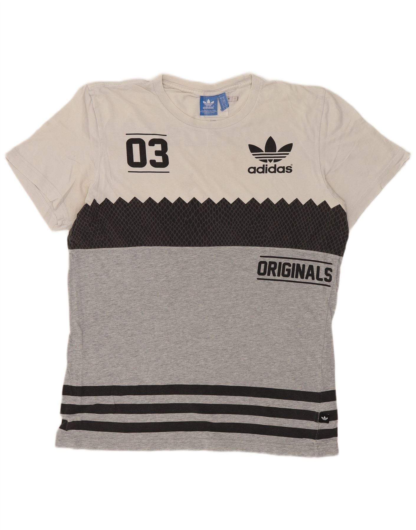 Мужская футболка ADIDAS Originals с графическим рисунком, хлопковый топ среднего серого цвета с цветными блоками
