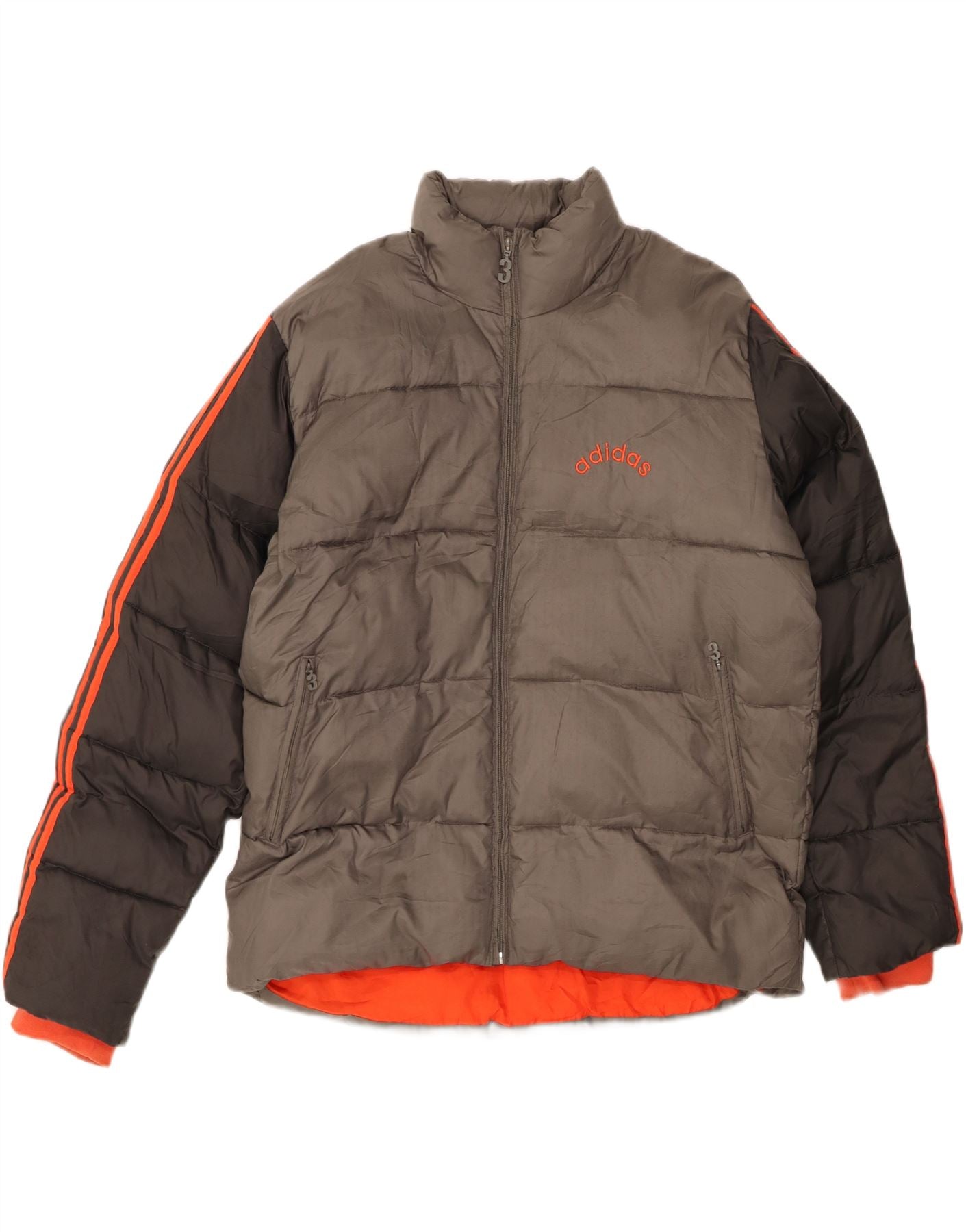 ADIDAS Mens Padded Jacket UK 40 Large Grey Colourblock Polyester