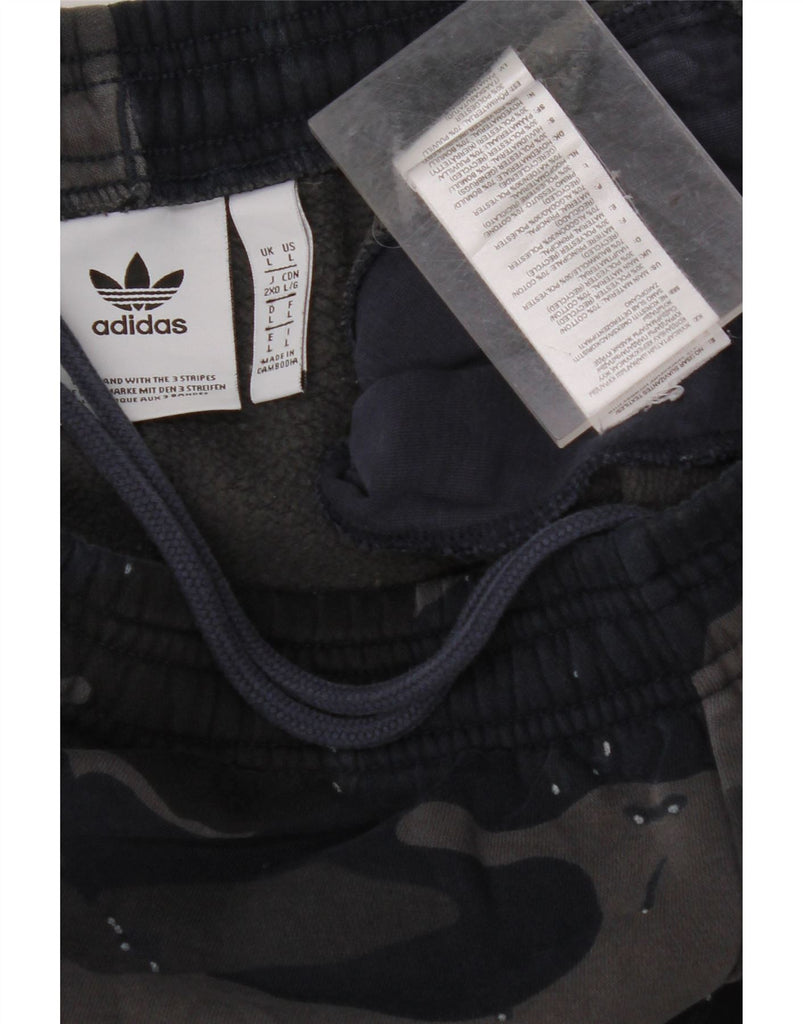 ADIDAS Mens Tracksuit Trousers Joggers Large Black Camouflage Cotton