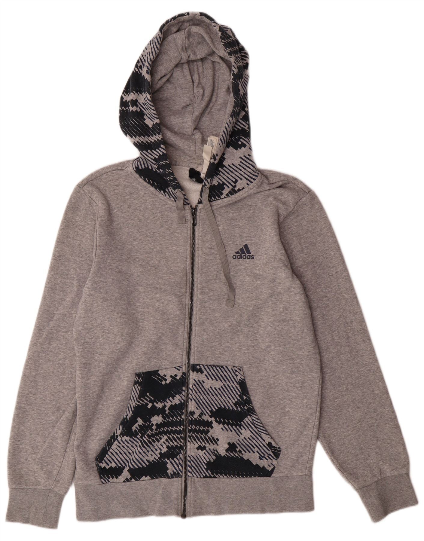 ADIDAS Мужской свитер с капюшоном на молнии, маленький серый хлопок с геометрическим рисунком