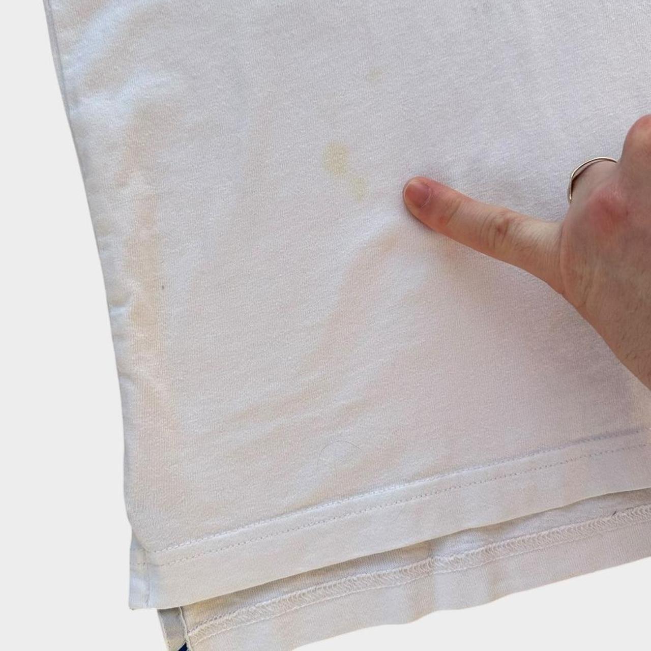 Белая футболка Adidas начала 2000-х с вышивкой и большим логотипом на груди.