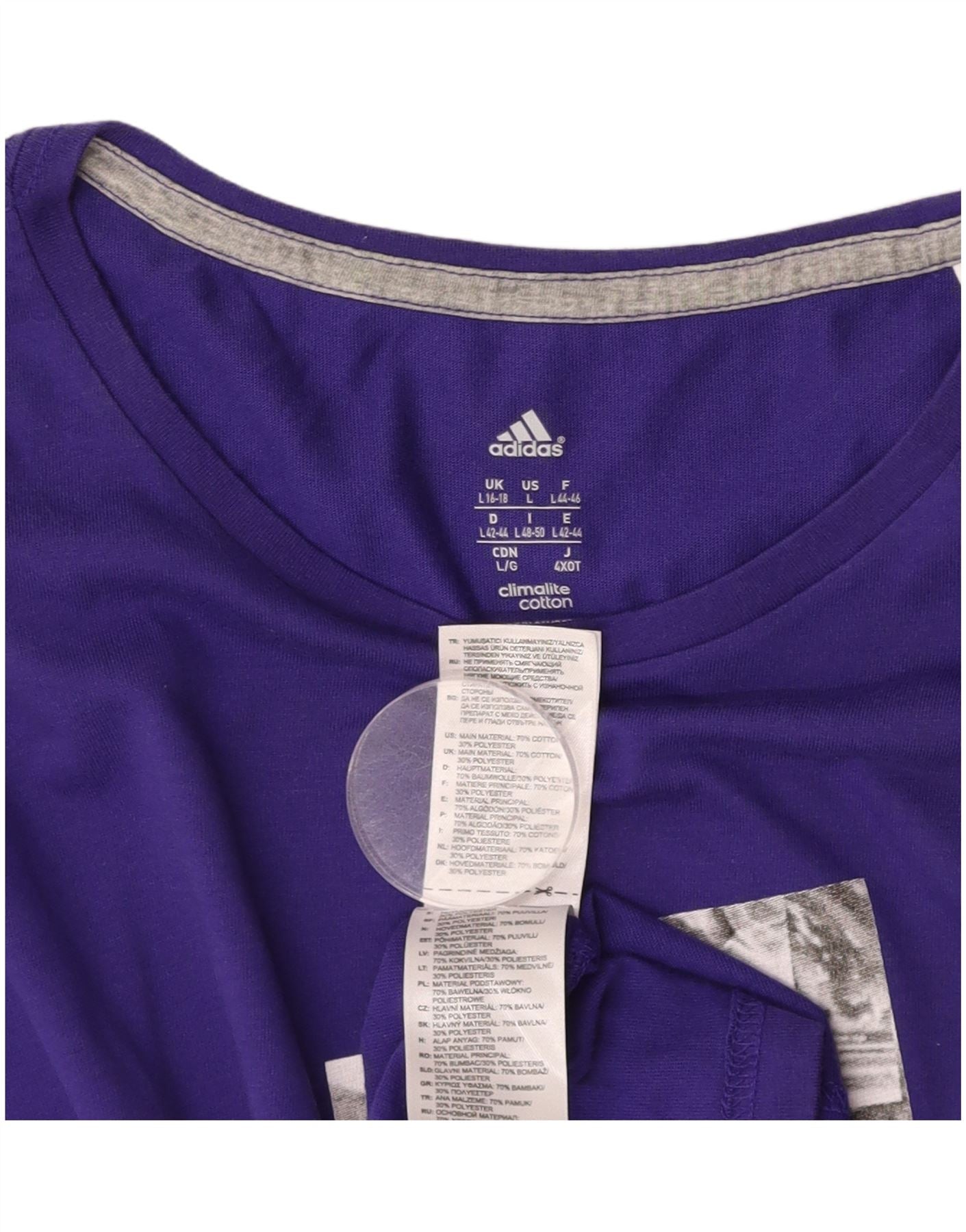 Home > Женский > Депоп Одежда > Женская футболка ADIDAS Climalite с рисунком, Великобритания, 16/18, большой фиолетовый хлопок