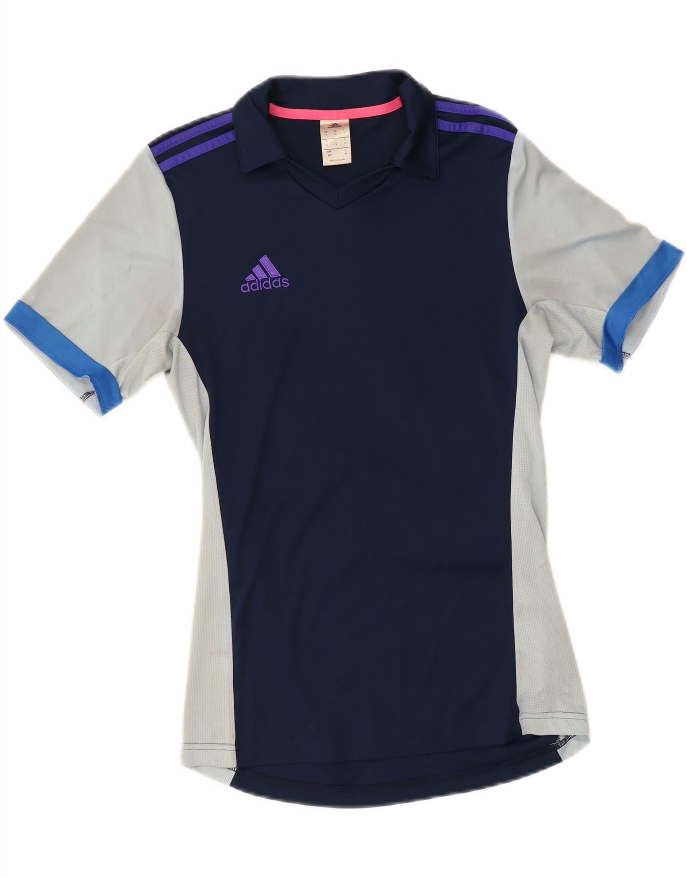 ADIDAS Womens Climalite Polo Shirt UK 10 Small Navy Blue Colourblock