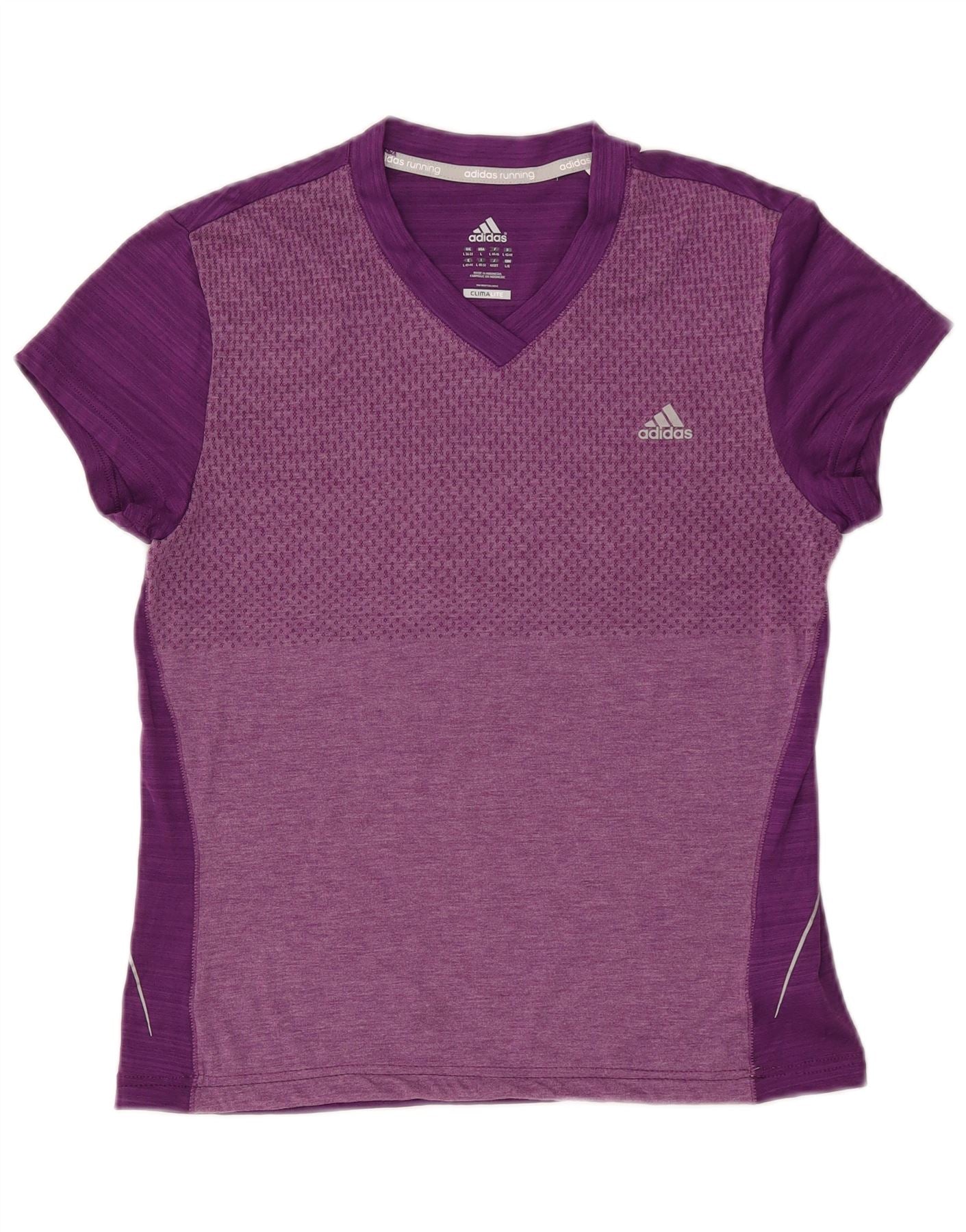 Женская футболка ADIDAS Climalite Top UK 14, большой фиолетовый, цветной блок