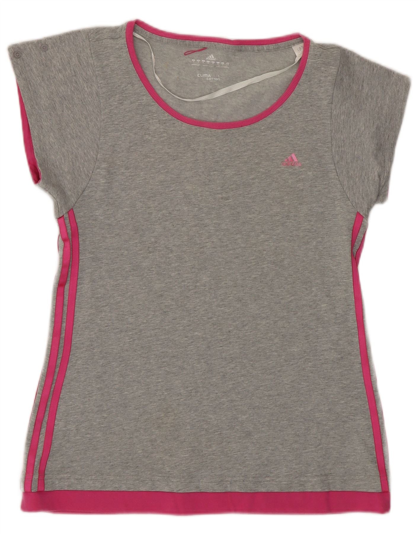ADIDAS Womens Climalite T-Shirt Top UK 14 Medium Grey Colourblock Cotton
