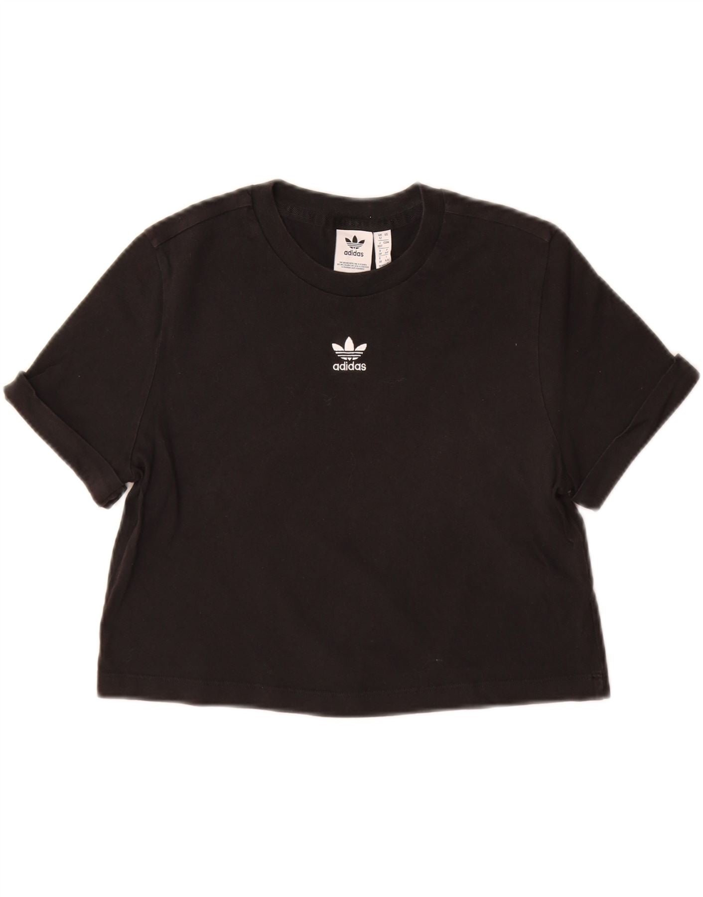 Женская укороченная футболка ADIDAS UK 12, средний черный хлопок