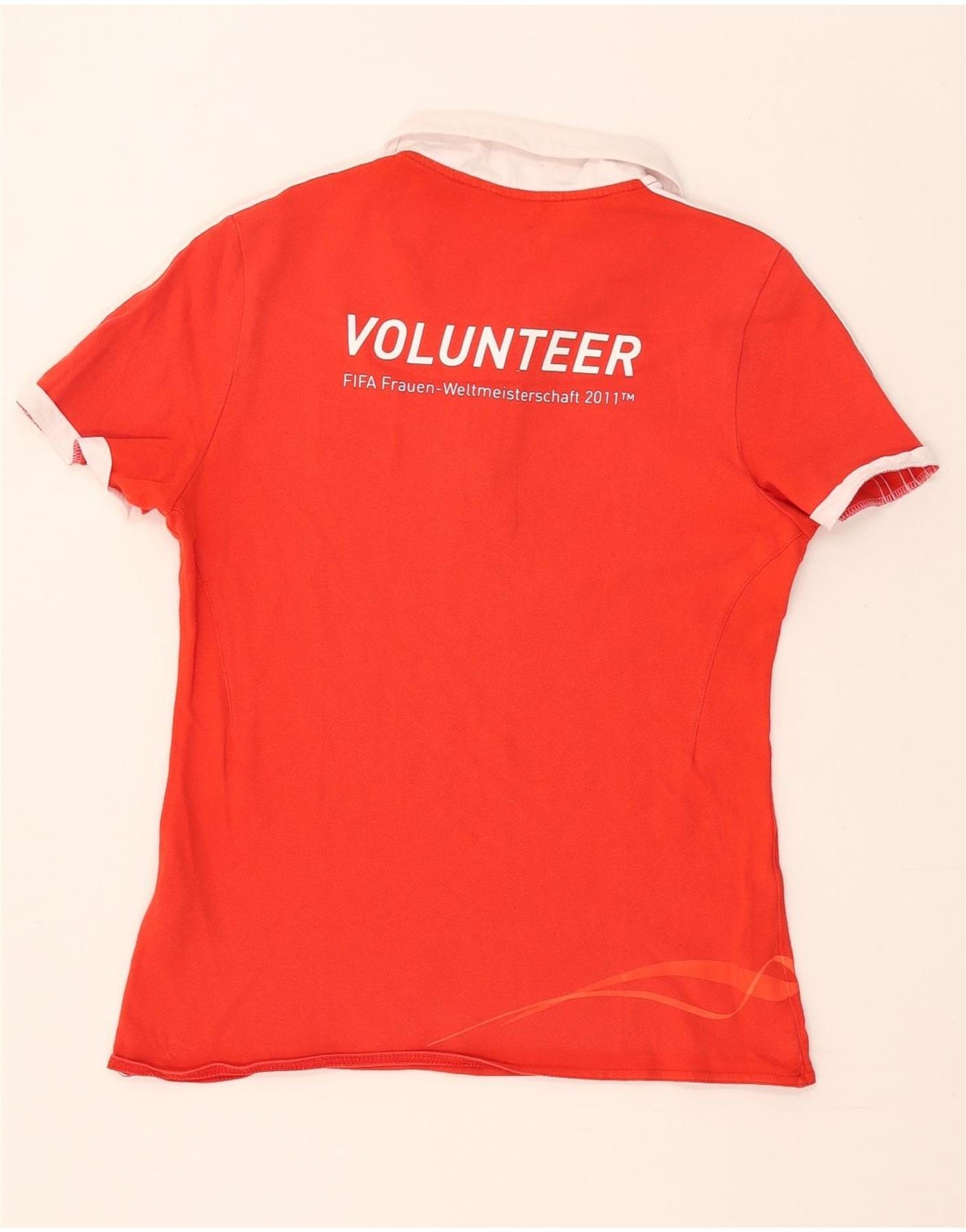- Описание ИИ: Женская рубашка-поло Adidas изготовлена из удобного красного хлопкового джерси. Имеет классический вырез горловины и короткие рукава. На лицевой стороне изображен логотип Adidas и изображение женского чемпионата мира по футболу 2011 года. Рукава украшены белыми полосками, а на спине надпись «ВОЛОНТЕР». Планка на пуговицах обеспечивает регулируемый комфорт. Стандартная посадка обеспечивает легкость движений и идеально подходит для занятий спортом или повседневной носки.