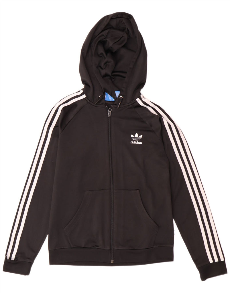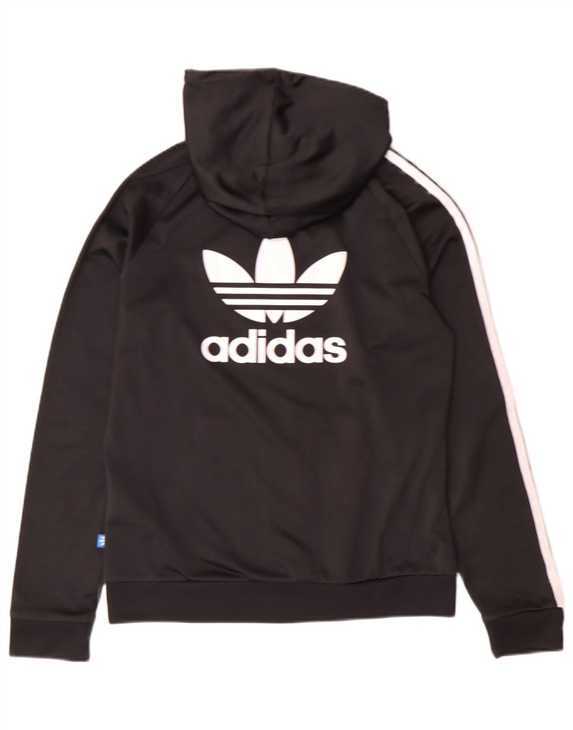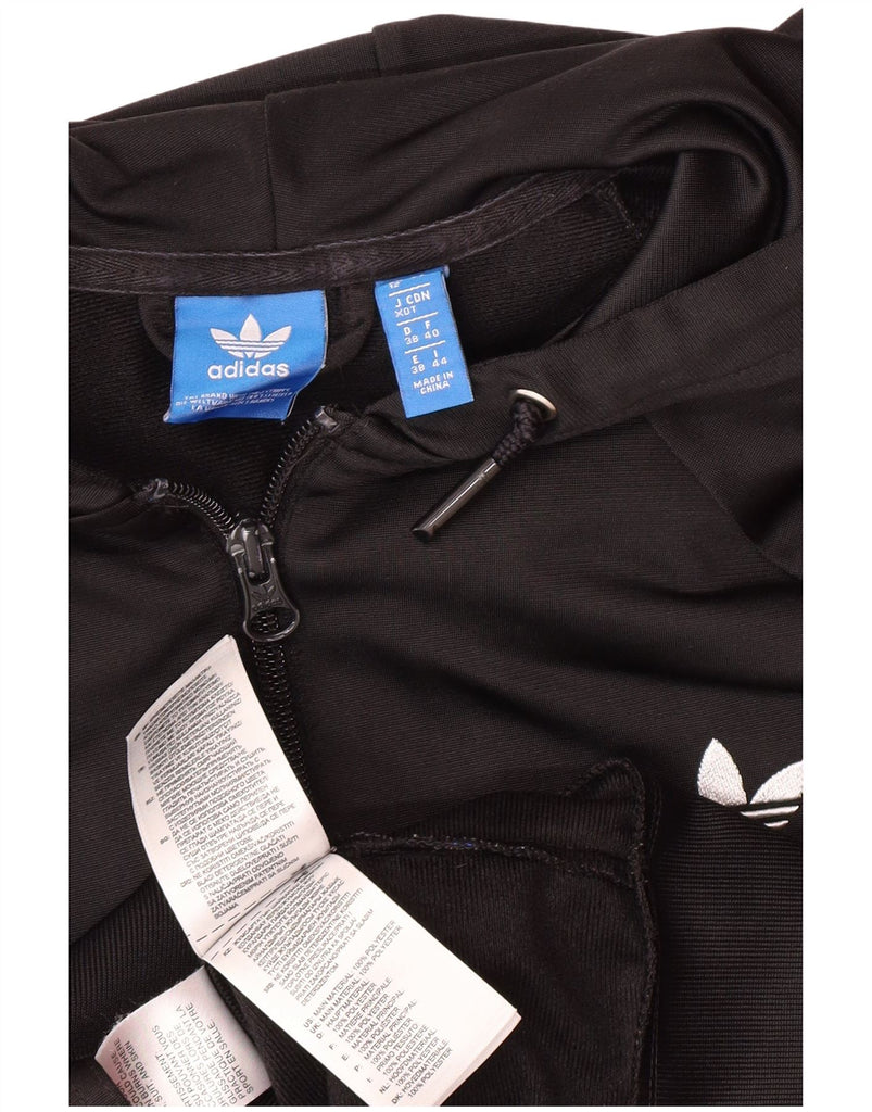 ADIDAS Womens Graphic Zip Hoodie Sweater UK 12 Medium Black Polyester