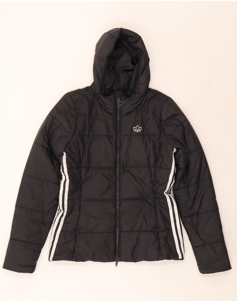 ADIDAS Womens Hooded Padded Jacket UK 10 Small Black Polyester