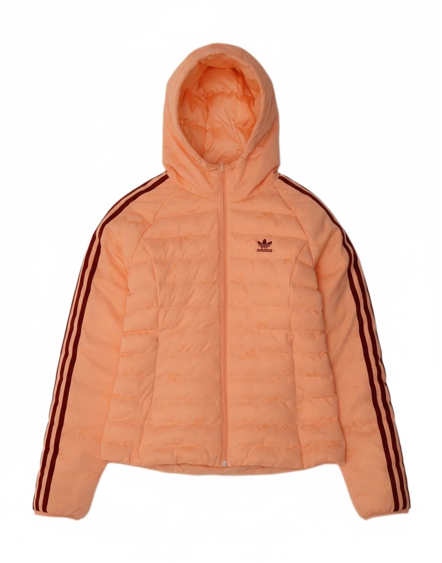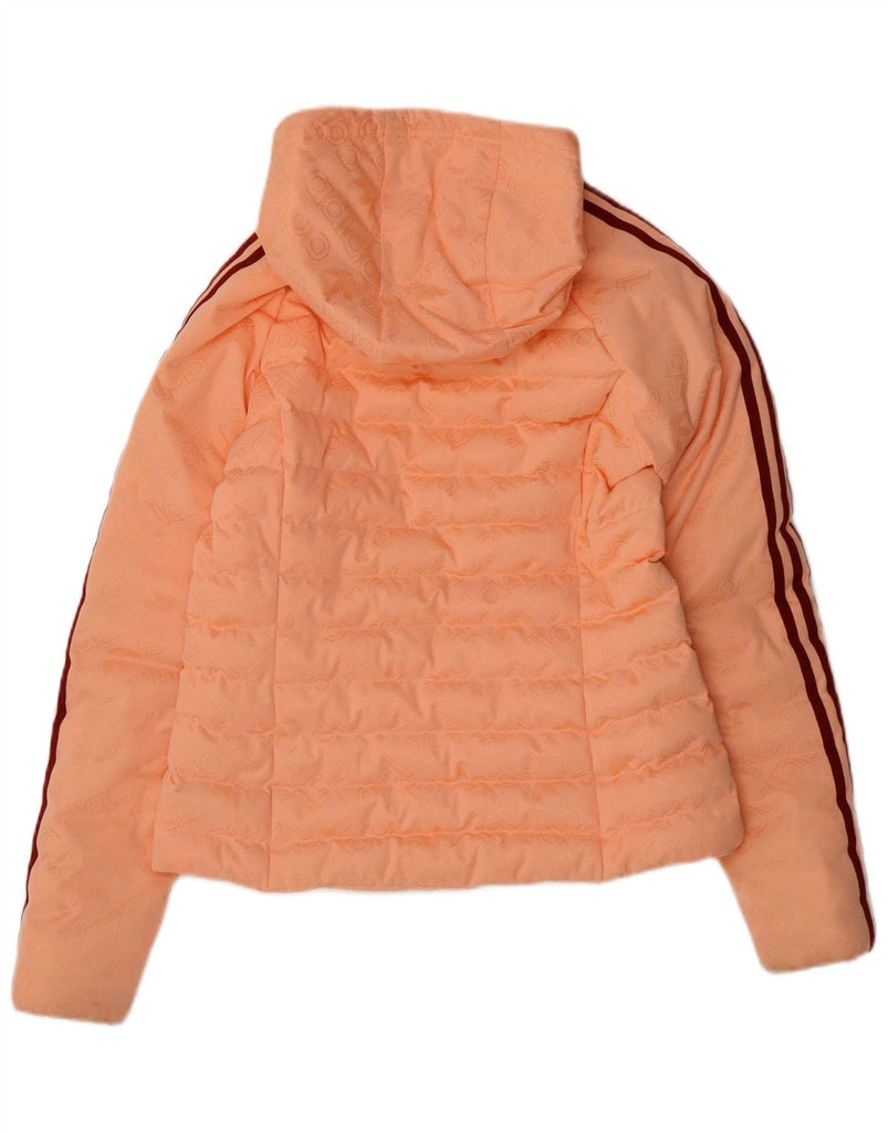 ADIDAS Womens Hooded Padded Jacket UK 12 Medium Orange Polyester Sports