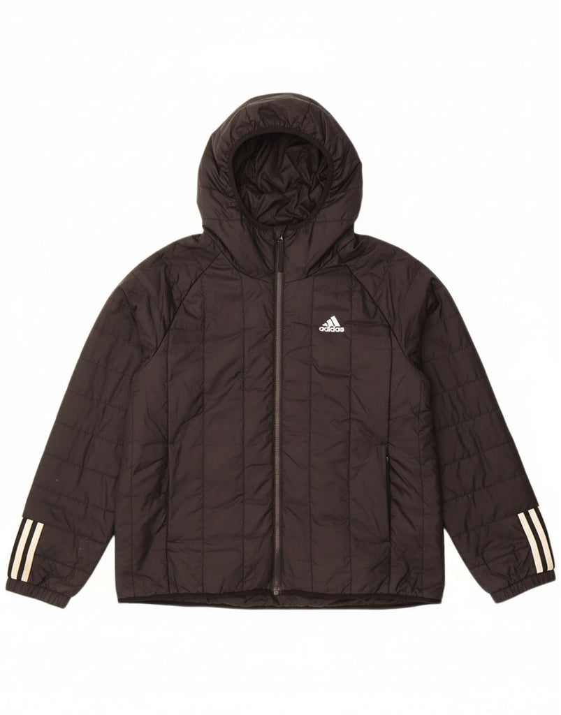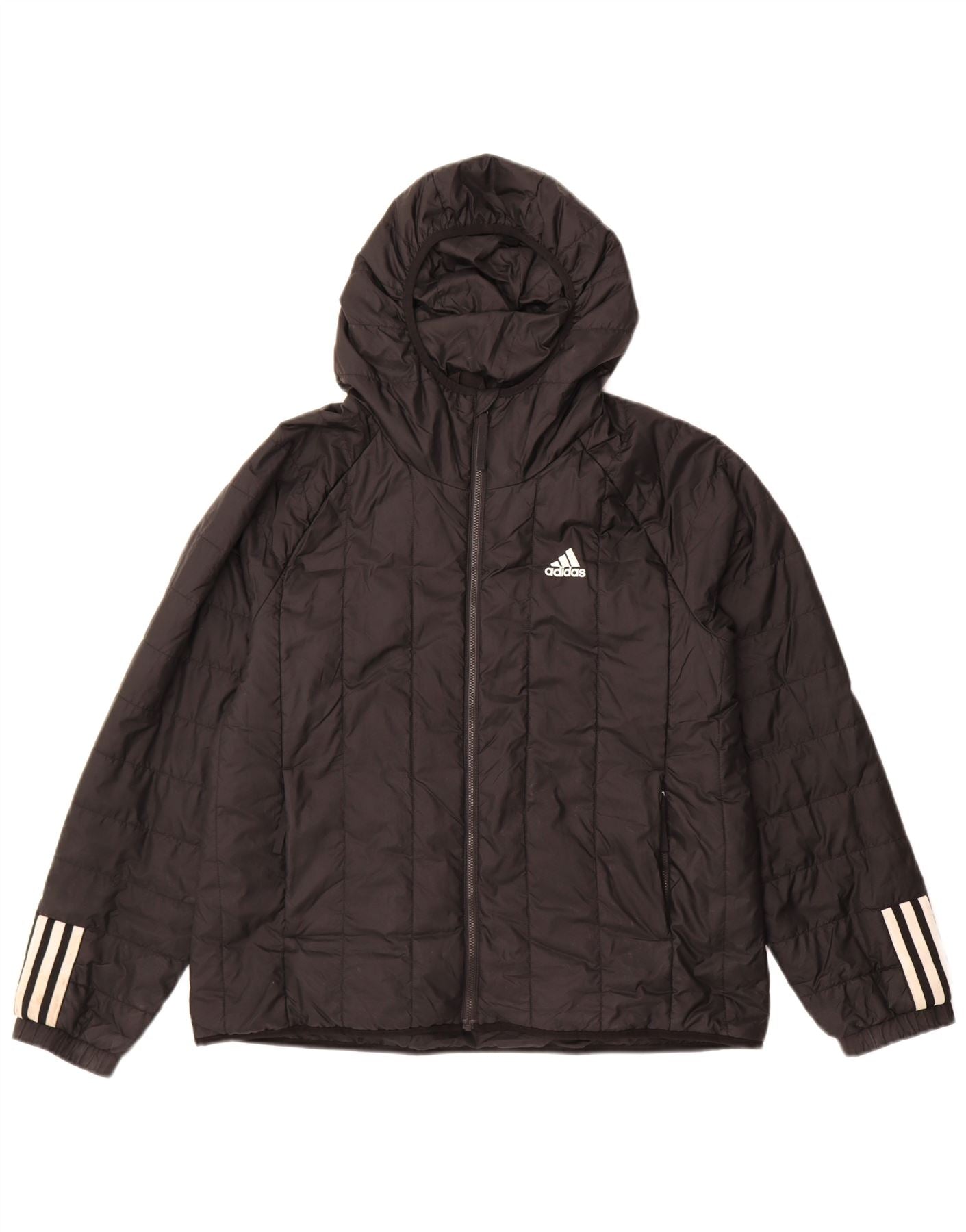 ADIDAS Womens Hooded Padded Jacket UK 14 Large Black Polyester