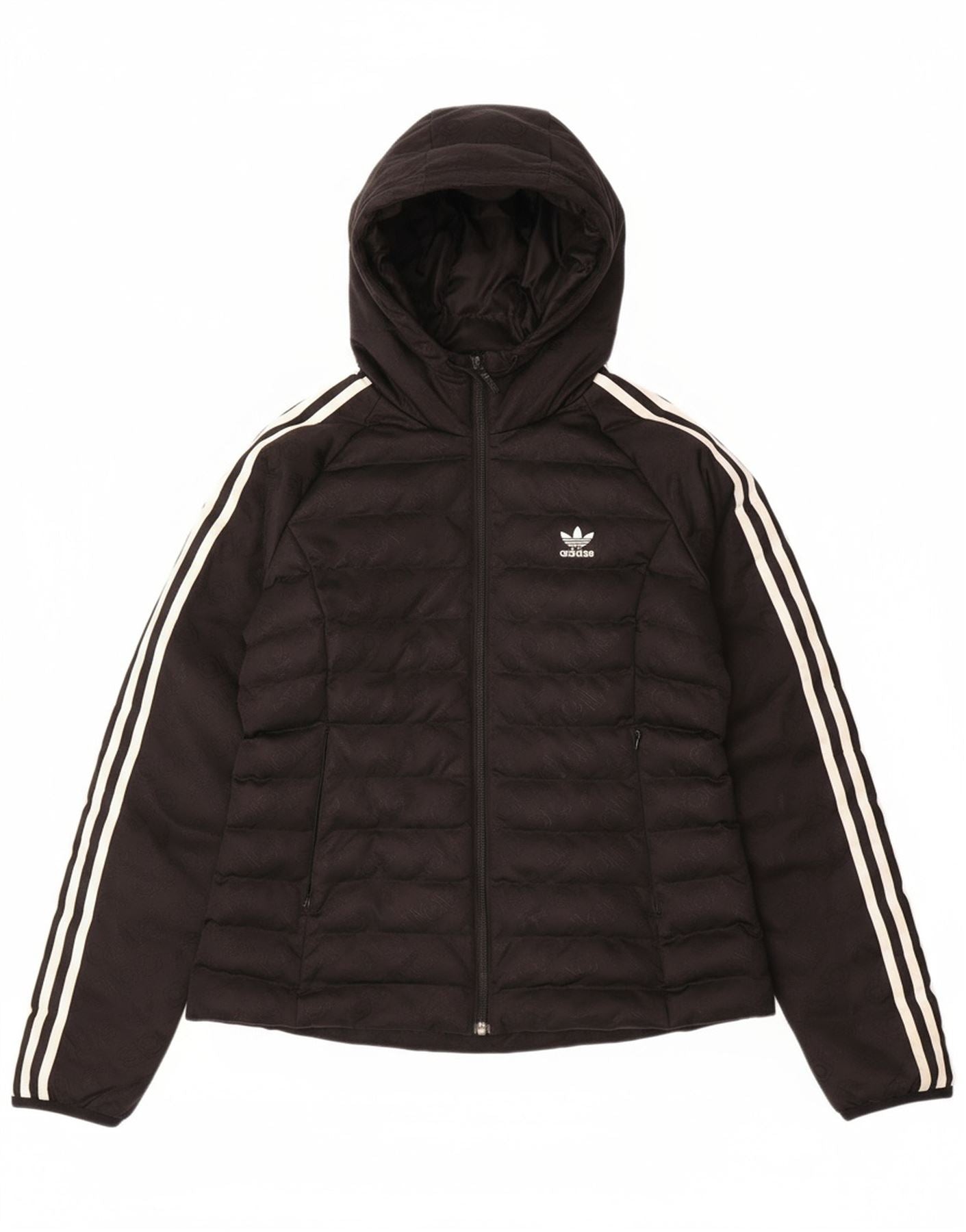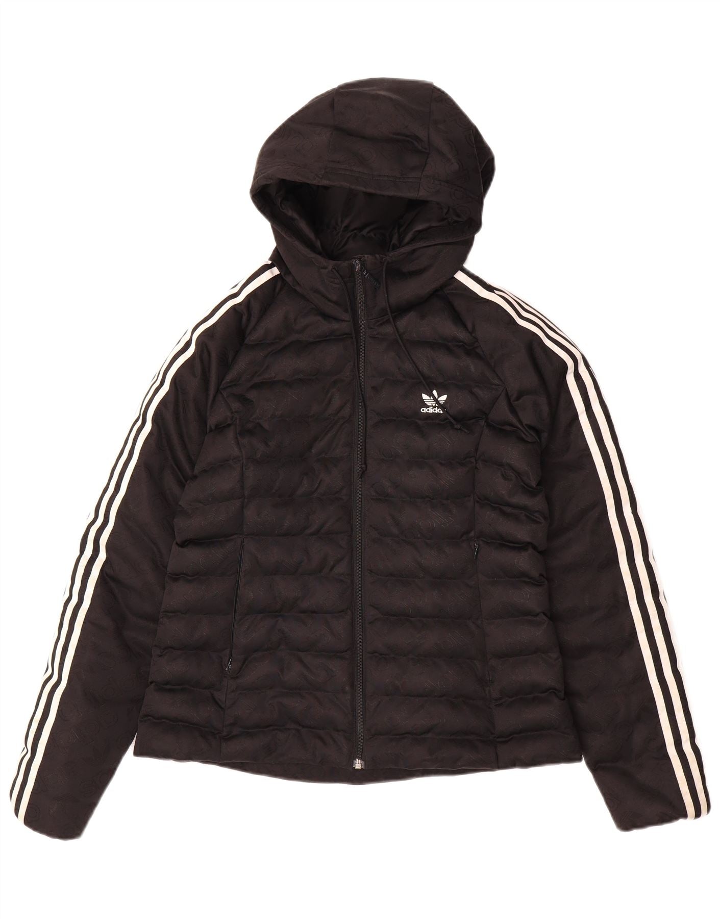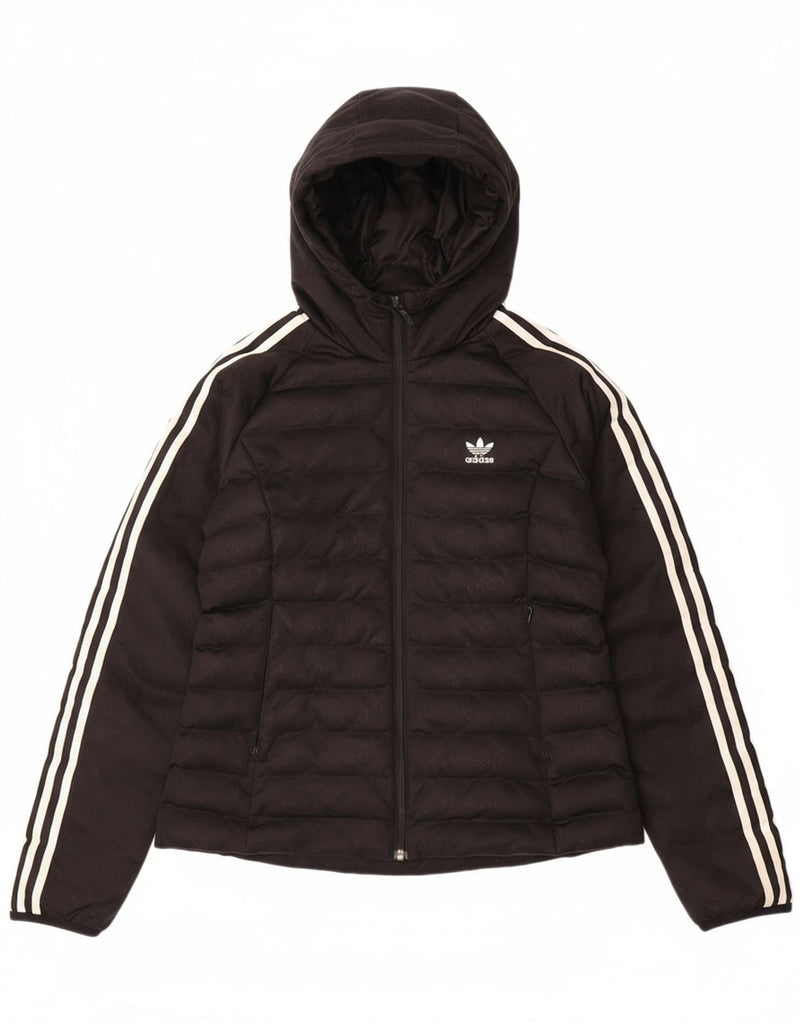 ADIDAS Womens Hooded Padded Jacket UK 14 Medium Black Polyester Logo