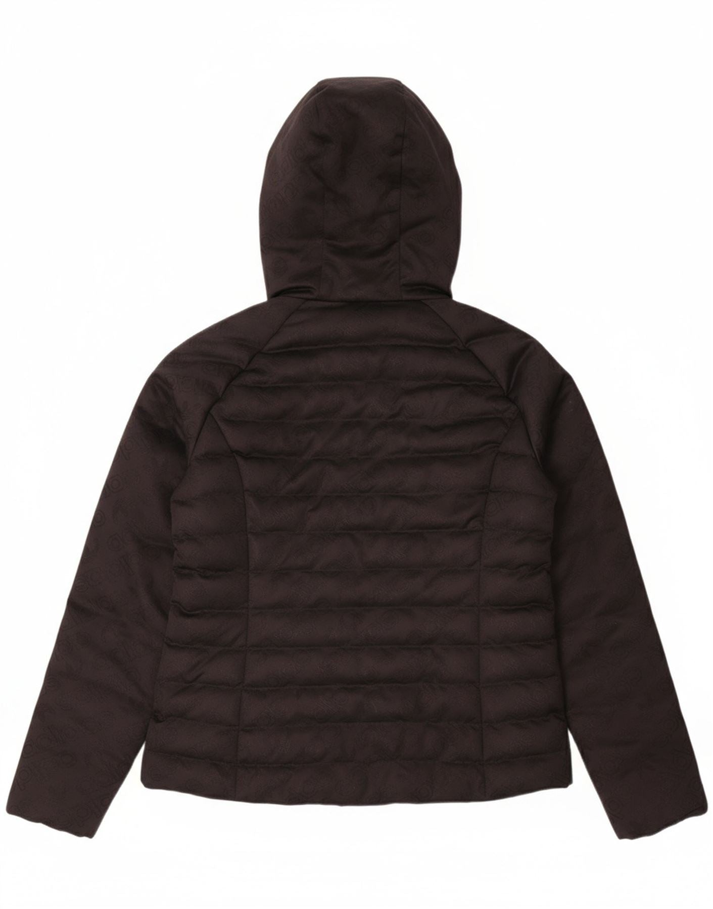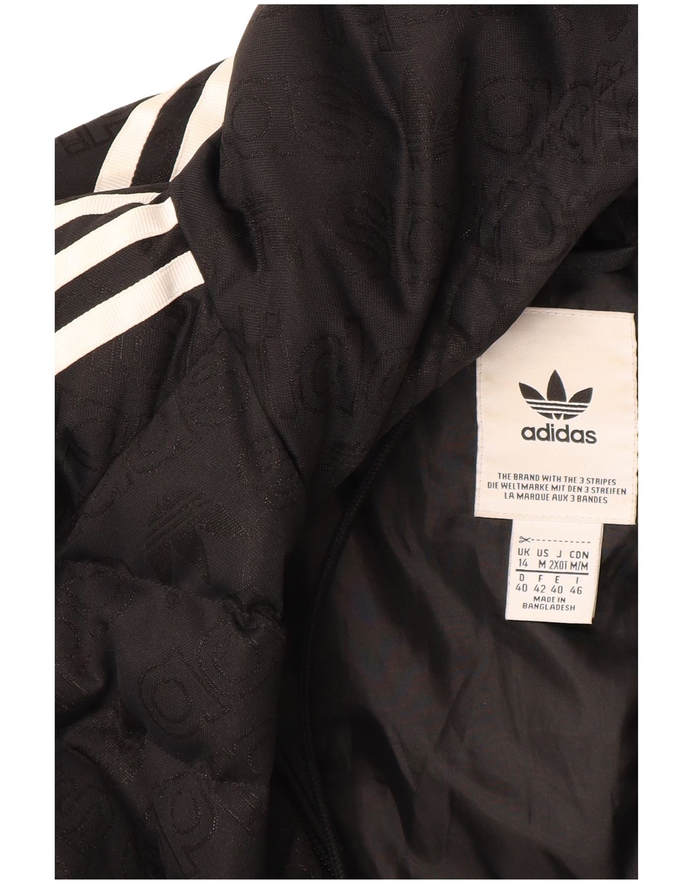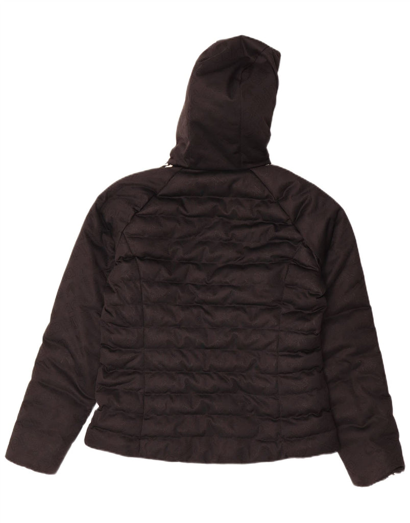 ADIDAS Womens Hooded Padded Jacket UK 14 Medium Black Polyester Logo