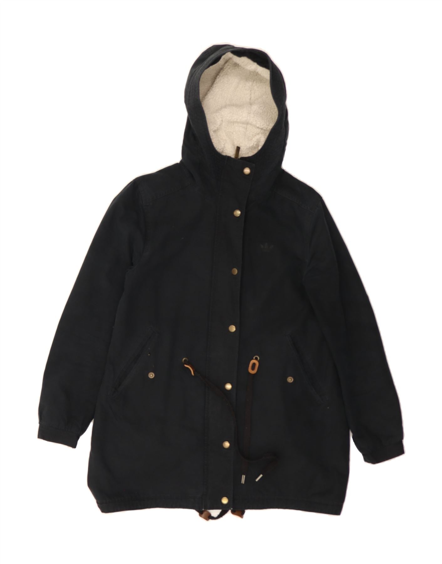 ADIDAS Womens Hooded Windbreaker Coat UK 8 Small Black Polyester