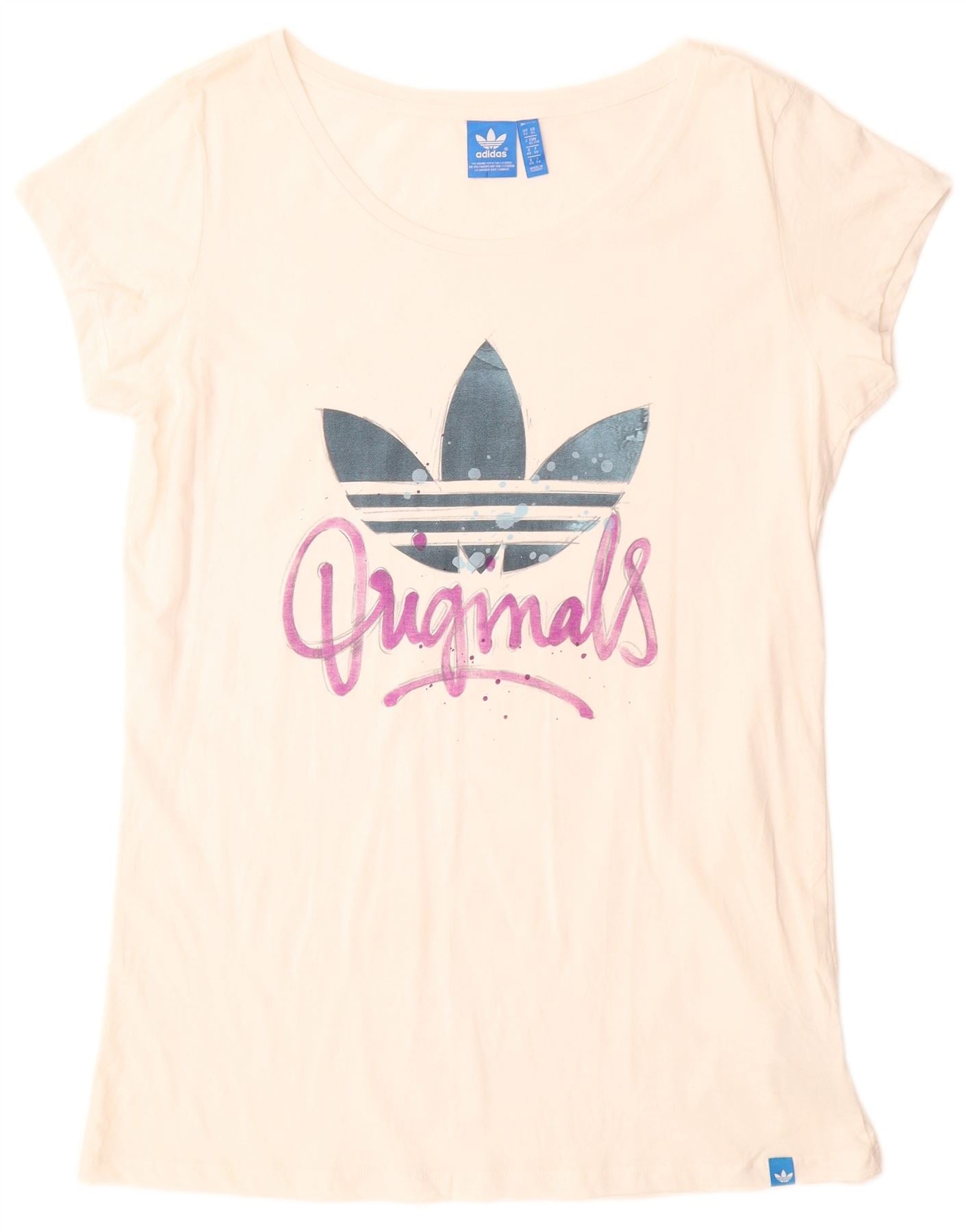 Женская удлиненная футболка с графическим рисунком ADIDAS UK 22 XL, белый хлопок