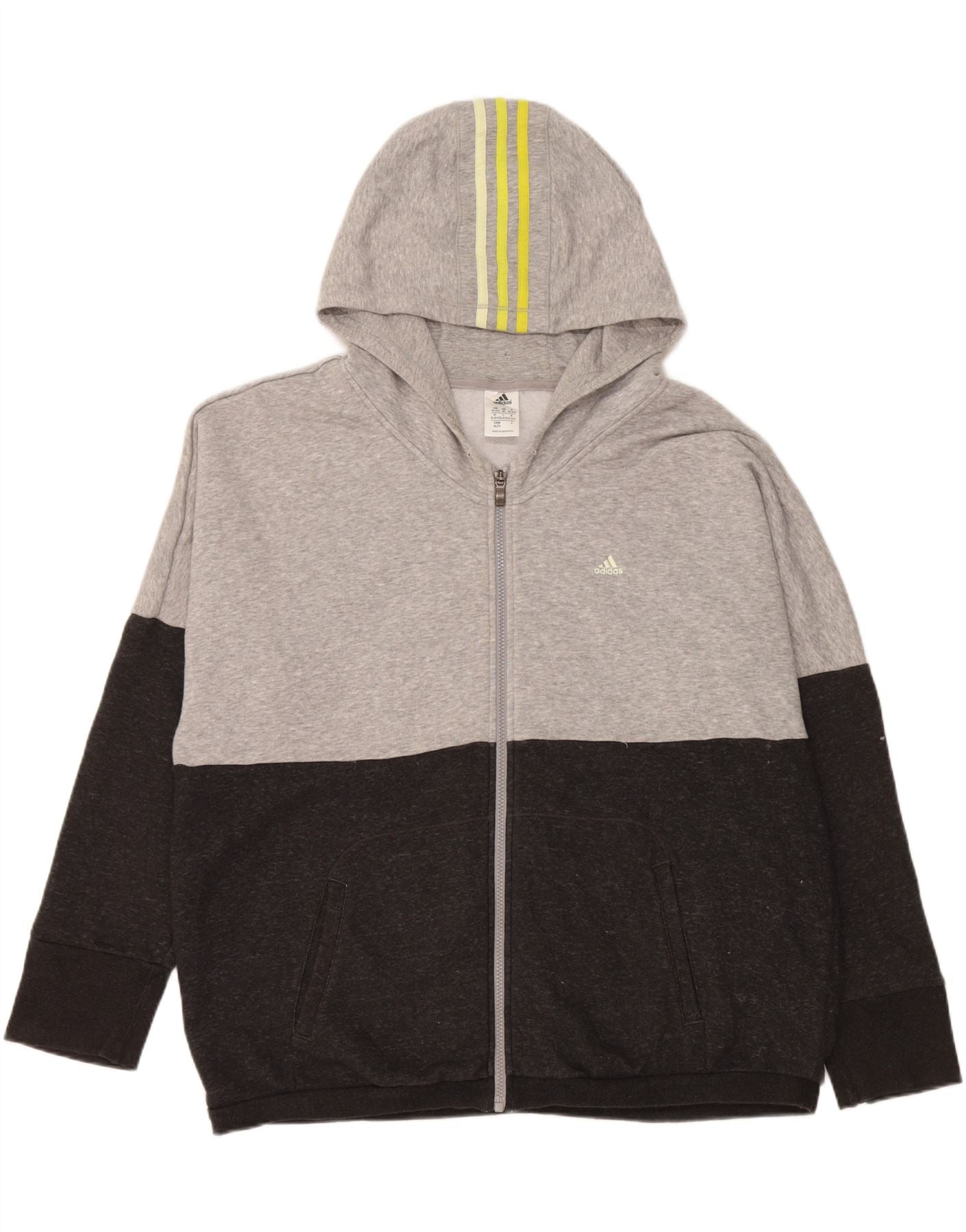 Женский свитер свободного кроя с капюшоном на молнии ADIDAS UK 24/26 2XL Серый с цветными блоками