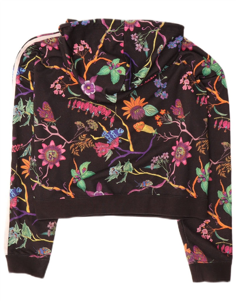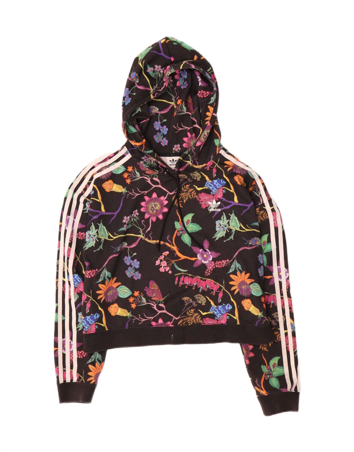Женский укороченный джемпер с капюшоном ADIDAS UK 8, маленький черный с цветочным принтом