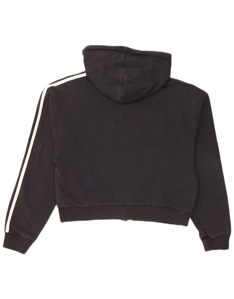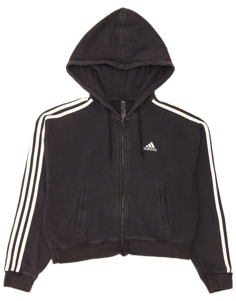 ADIDAS Женский укороченный свитер с капюшоном на молнии большого размера UK 4/6 XS, черный хлопок
