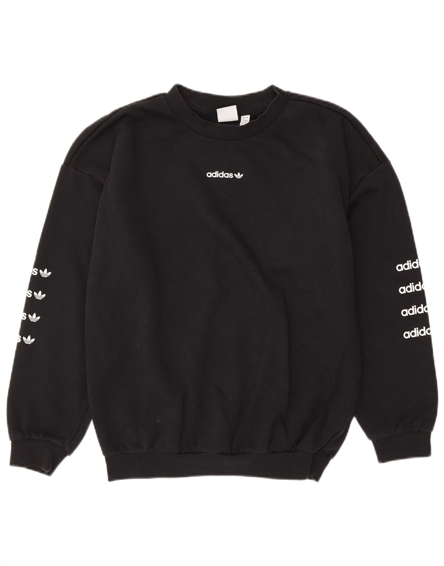 Женский свитер оверсайз с рисунком ADIDAS, размер UK 8, маленький, черный, хлопок
