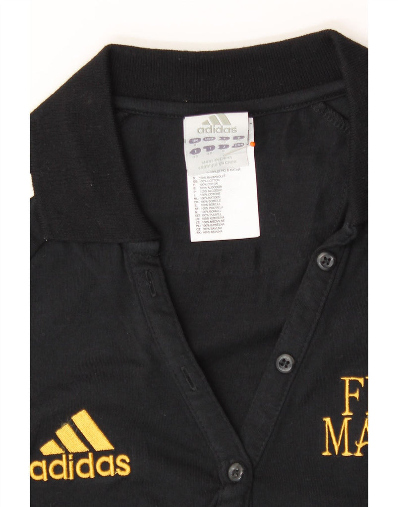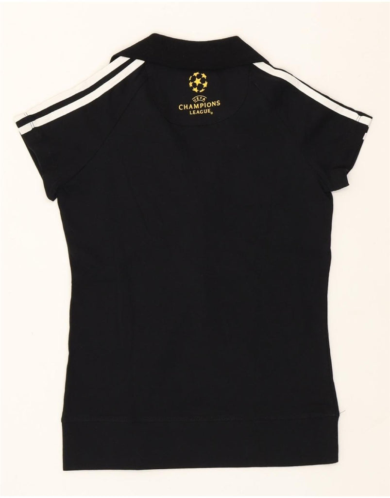ADIDAS Womens UEFA Champions League Polo Shirt UK 8 Small Black Cotton