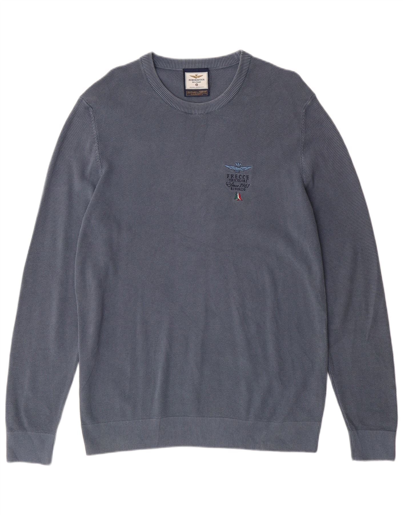 Мужской джемпер с круглым вырезом AERONAUTICA MILITARE, синий хлопок XL