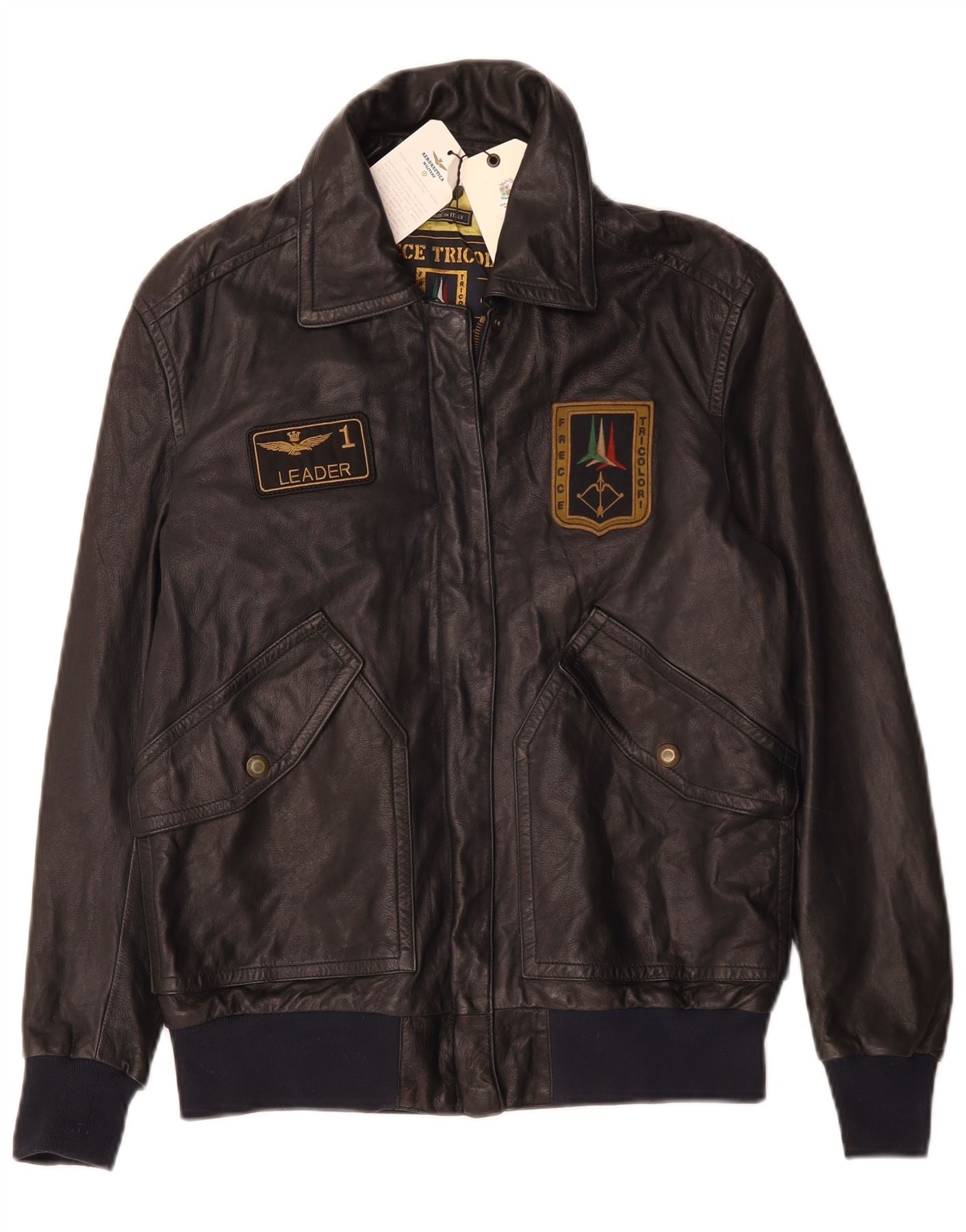 AERONAUTICA MILITARE Женская куртка с рисунком IT 42 Средняя черная кожа