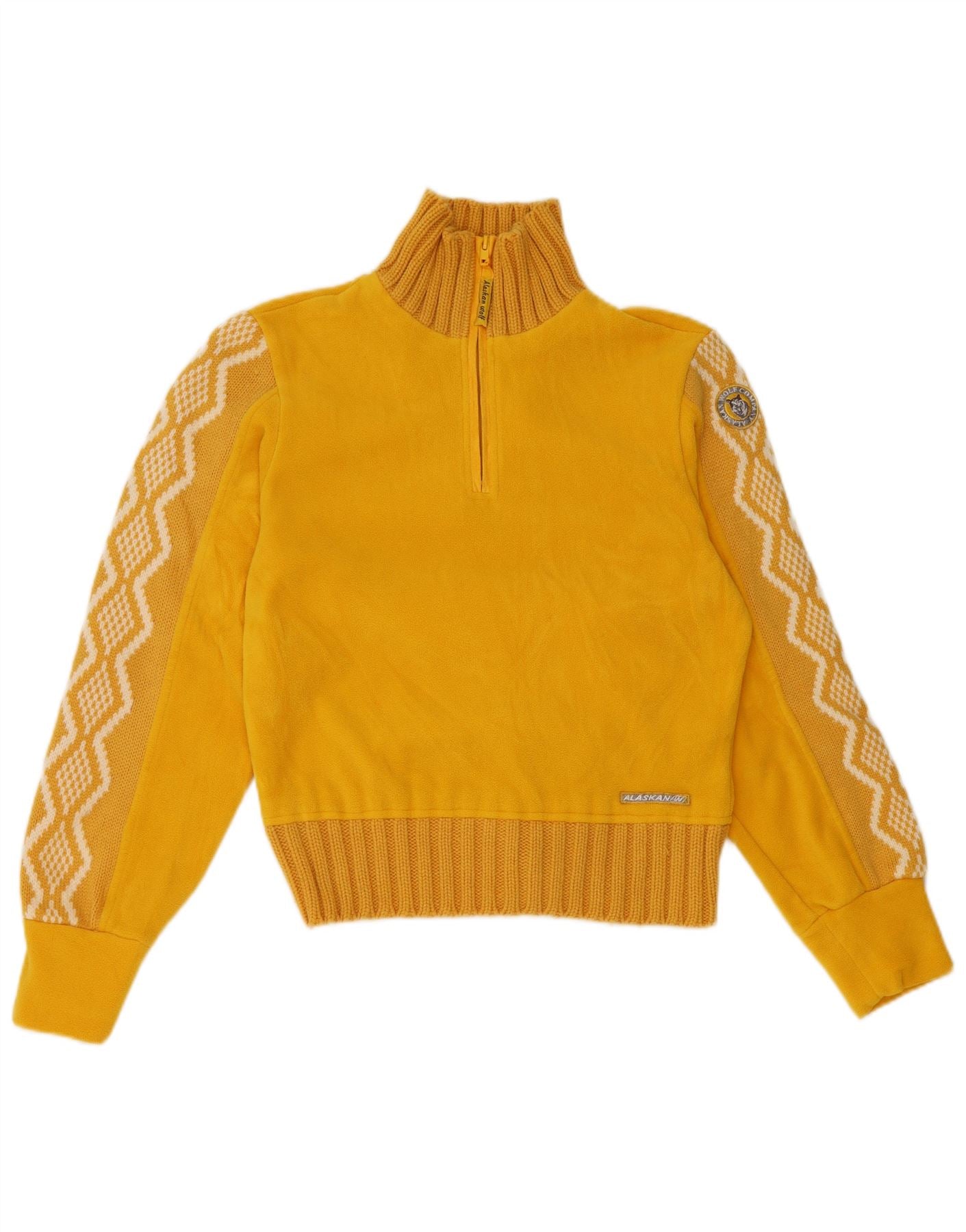 Женский флисовый джемпер с воротником на молнии ALASKAN, размер UK 10, маленький желтый с геометрическим рисунком