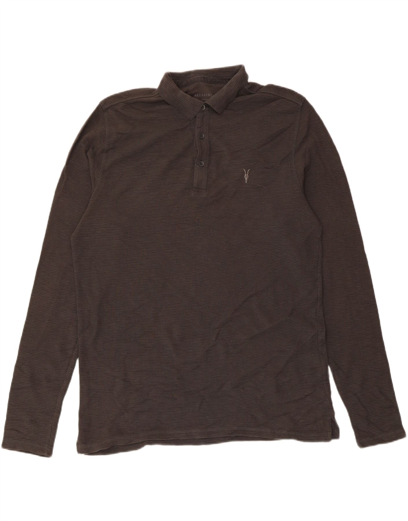 Мужская рубашка-поло All Saints с длинным рукавом, хлопковая серого цвета среднего размера