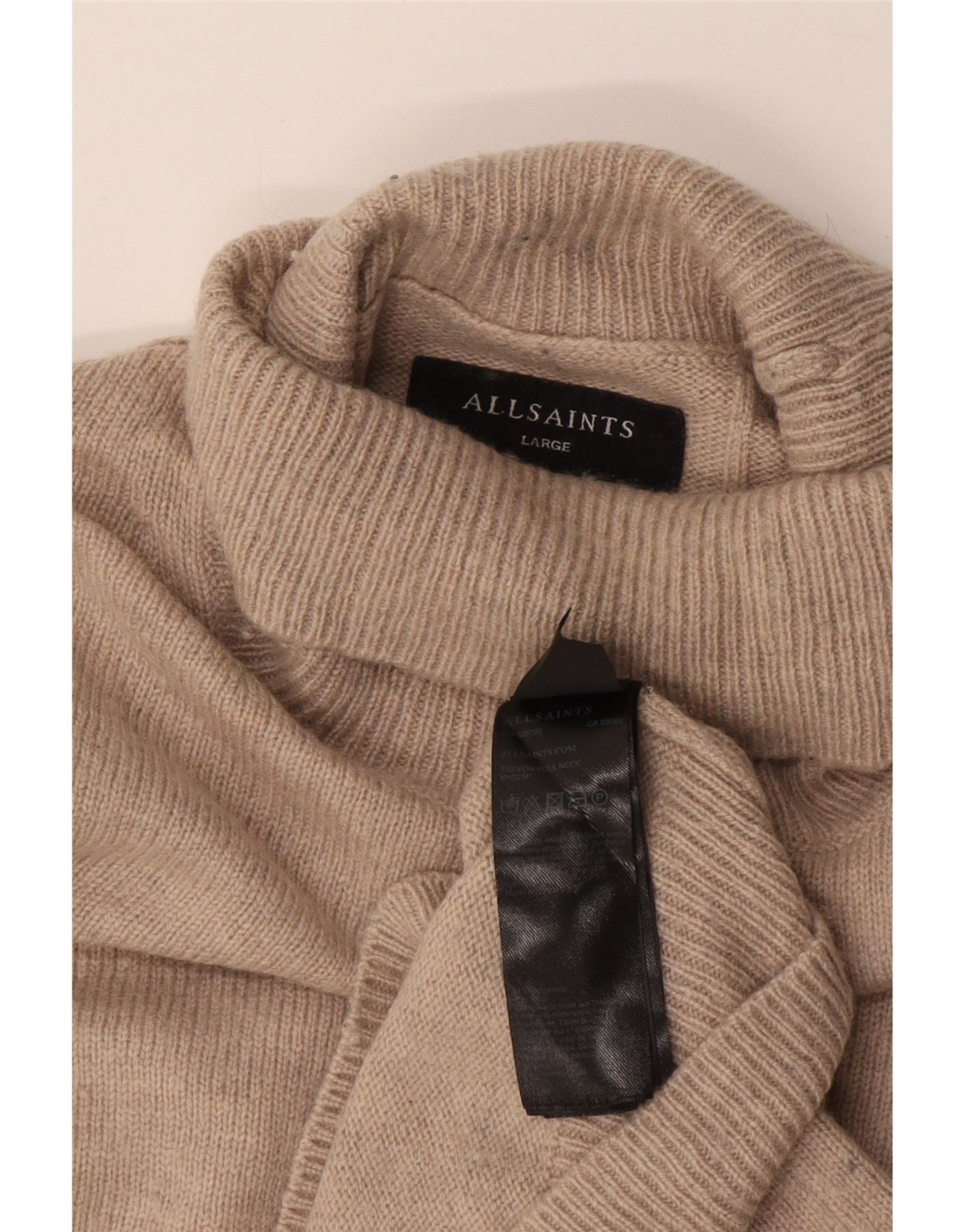 Мужской джемпер с высоким воротником ALL SAINTS, большой бежевый шерстяной свитер