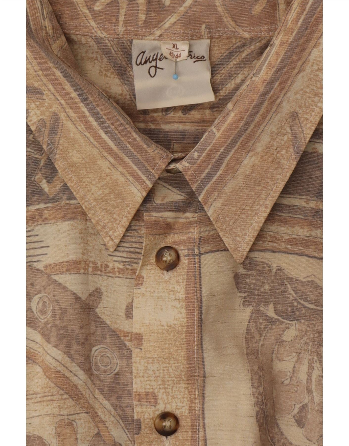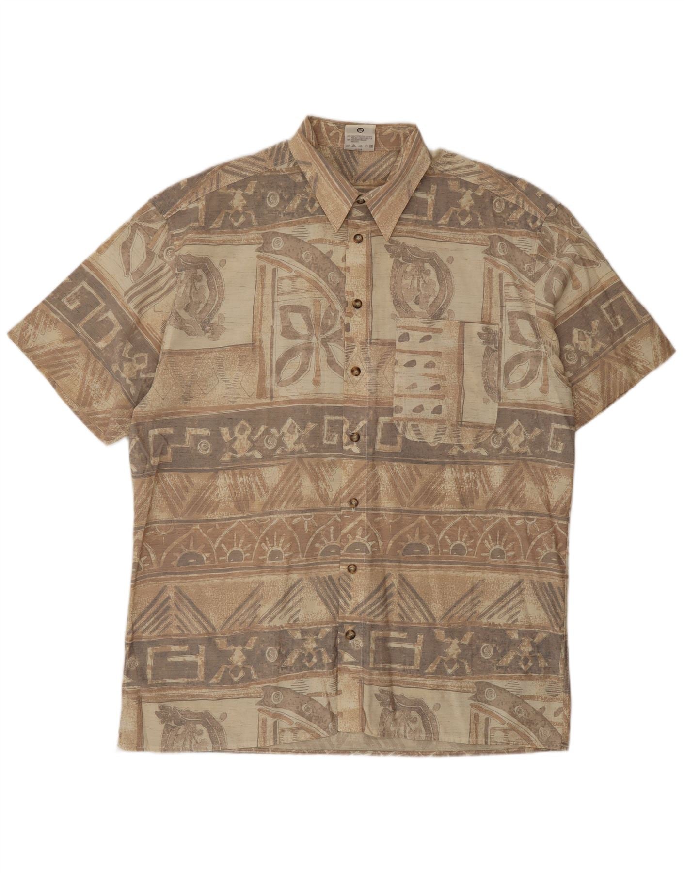 Мужская рубашка с коротким рукавом ANGELO LITRICO, размер 43/44 XL, бежевая, с геометрическим рисунком ацтеков