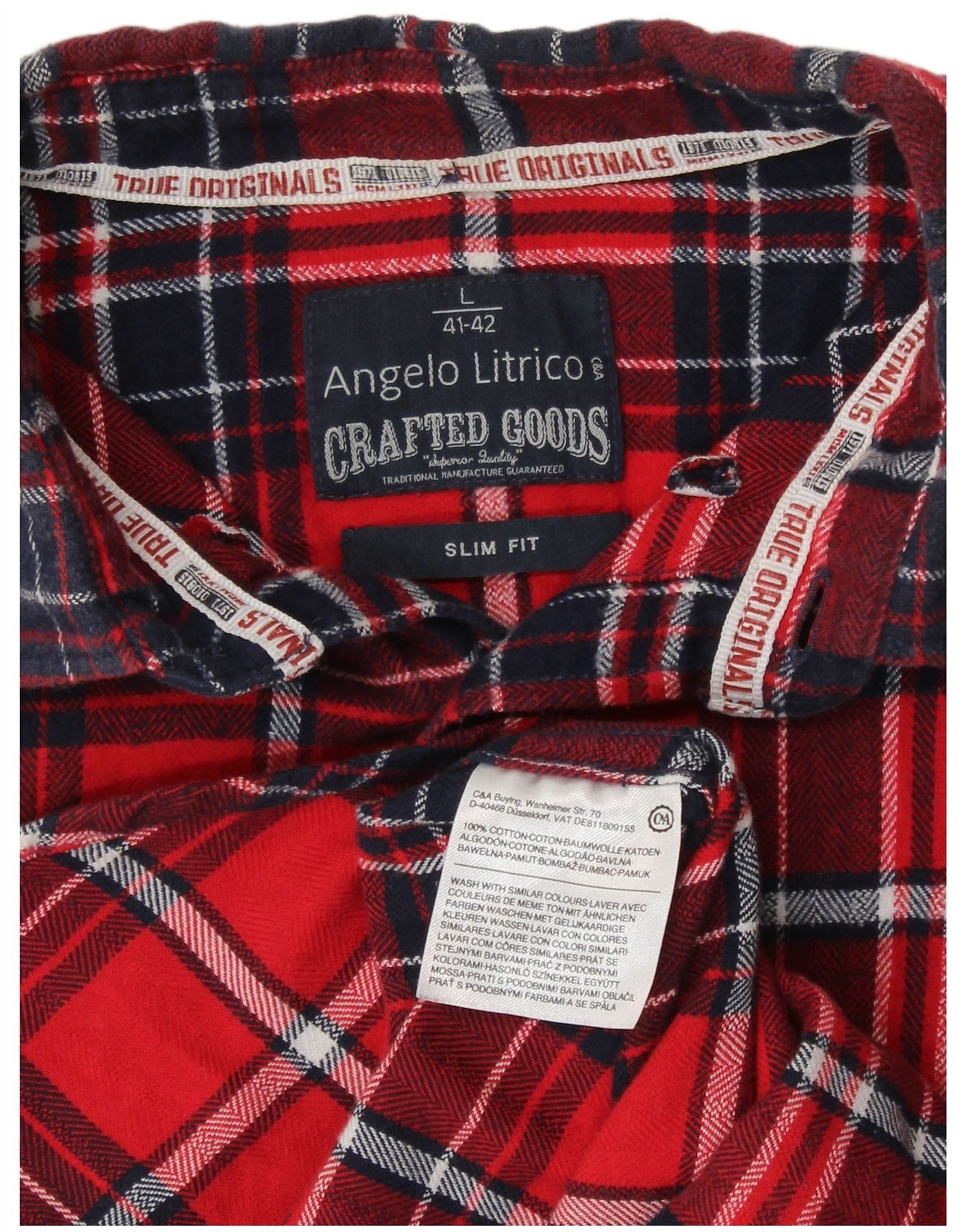 Мужская фланелевая рубашка приталенного кроя ANGELO LITRICO, размер 41/42, большая красная клетка