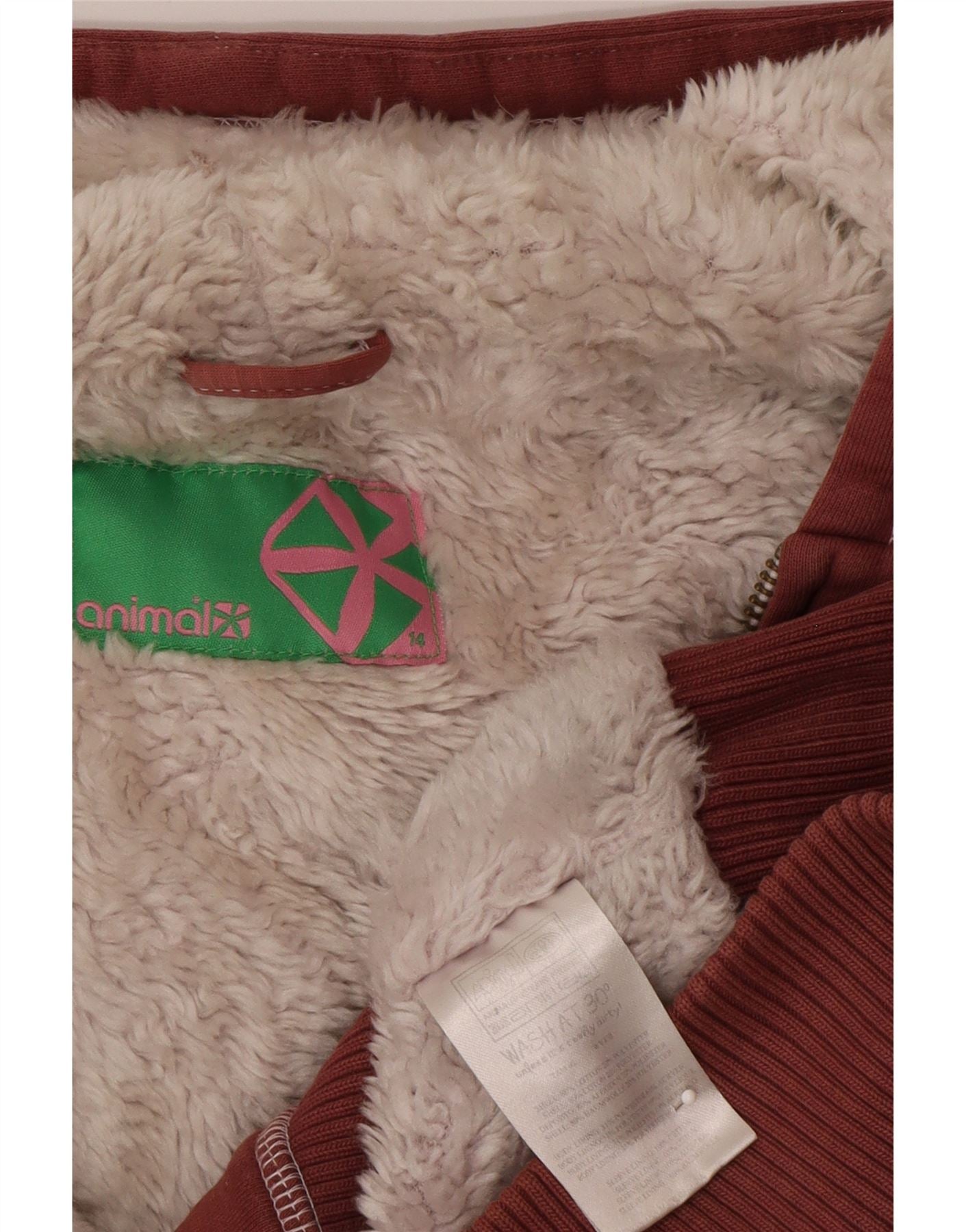 ANIMAL Womens Graphic Zip Hoodie Sweater UK 14 Medium Red Cotton