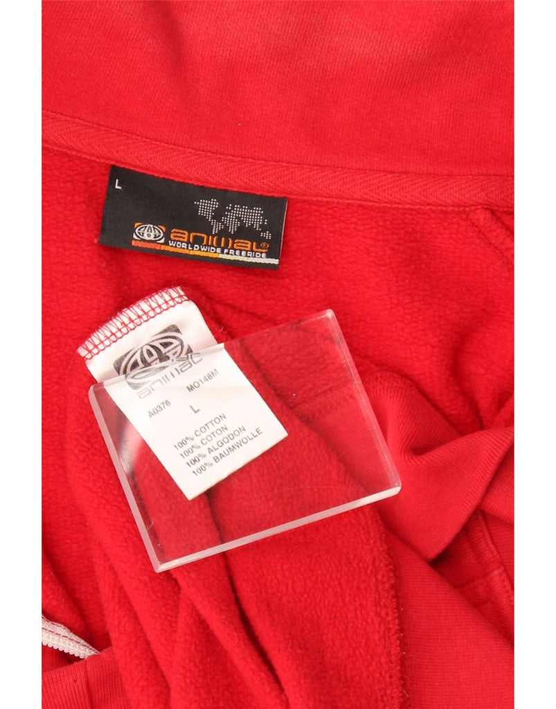 ANIMAL Womens Oversized Graphic Zip Hoodie Sweater UK 14 Large Red Cotton